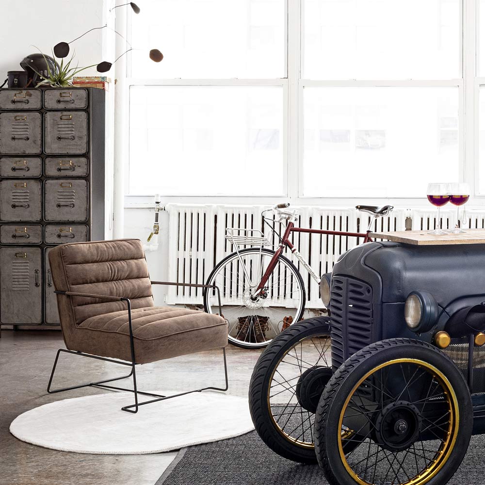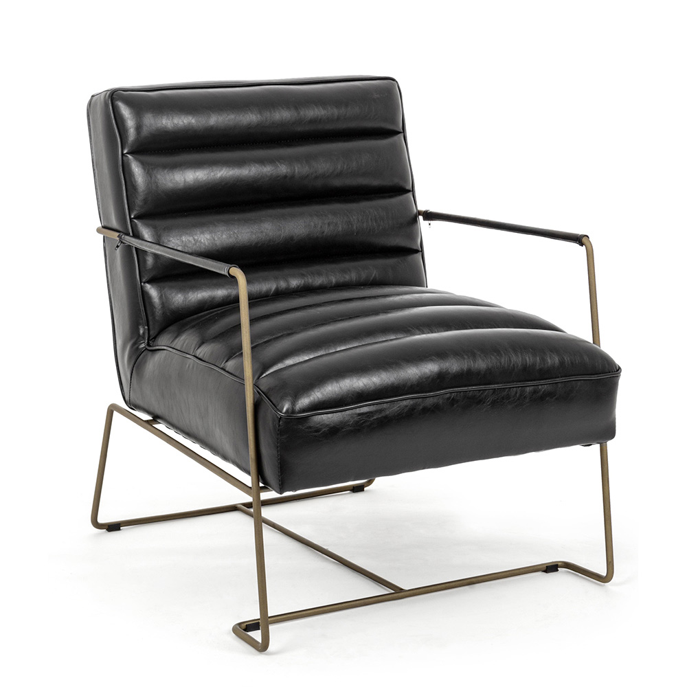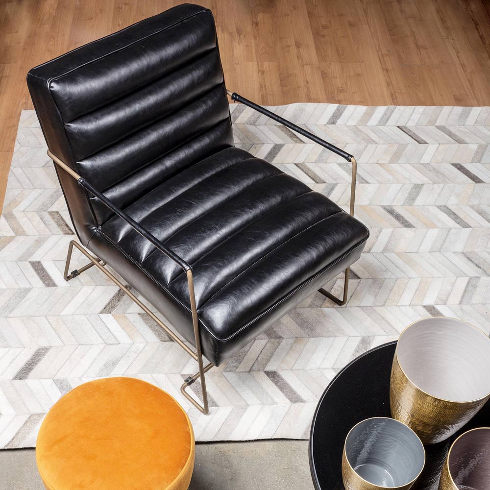 Fotoliu cu design clasic din otel si sezut din piele ecologica neagra sau maro.