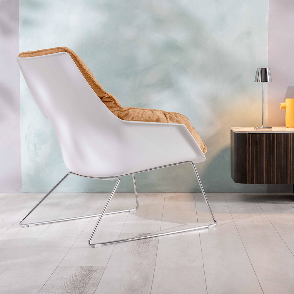 Conceput pentru a acomoda corpul intr-un confort si relaxare totala datorita captuselii generoase, acesta este fotoliul care te invita sa stai si sa experimentezi confortul acestuia. Structura din polipropilena cu baza metalica este completata de un scaun detasabil si lavabil. Distractiv și modern, este ideal pentru medii informale și contract.
