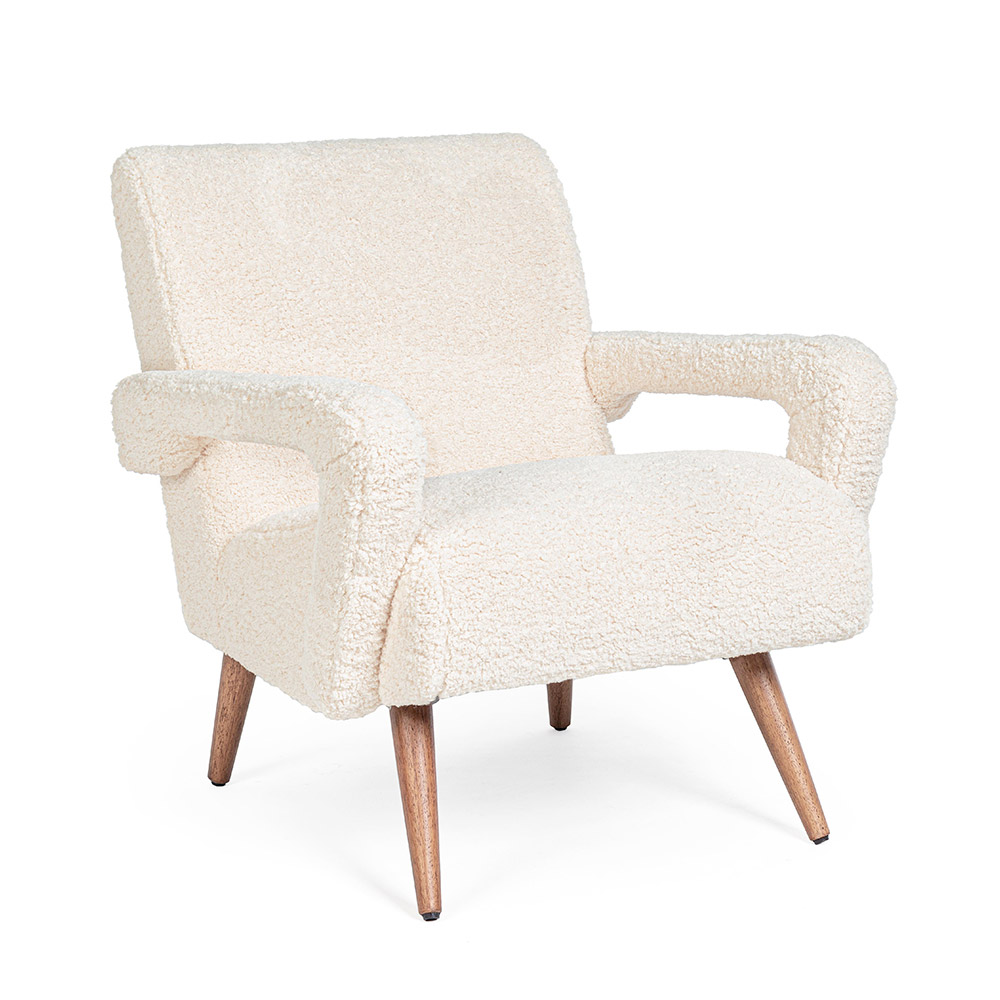 Fotoliu cu Cotiere din Cauciuc și Scaun Efect Lână - Patrizia