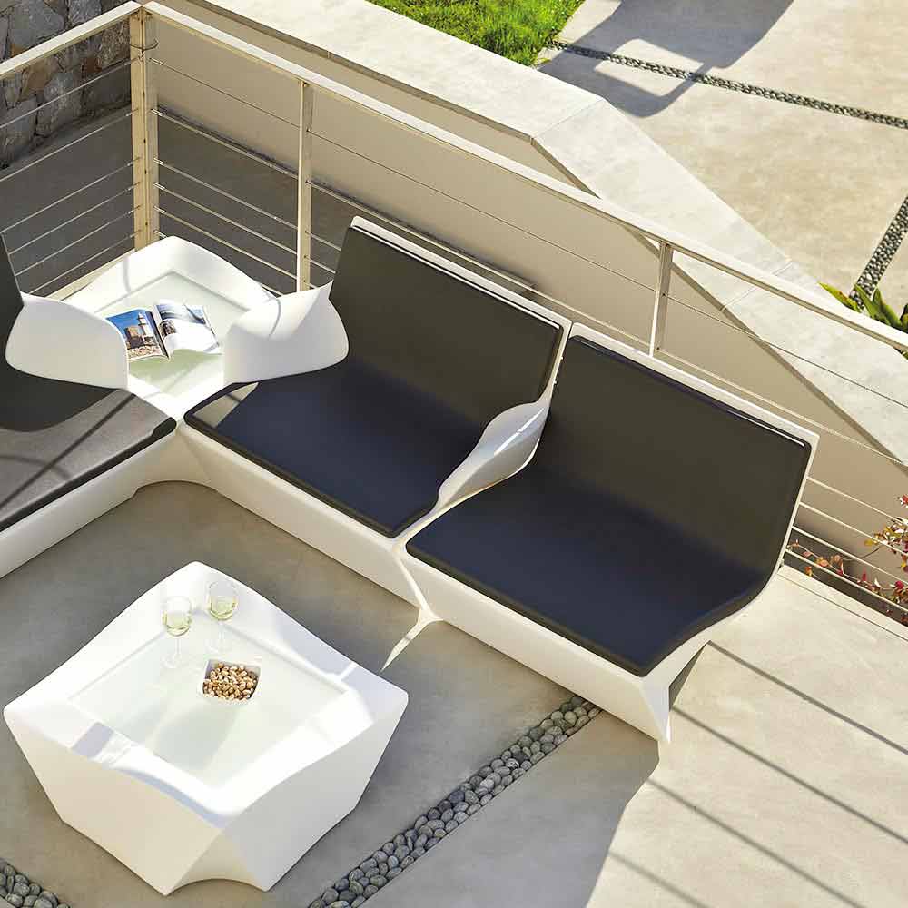 Kami San poate fi combinat cu șezlongul Kami Ichi și cu canapeaua Kami Yon cu cotiere. Disponibil și în varianta luminoasă sau lăcuită.
