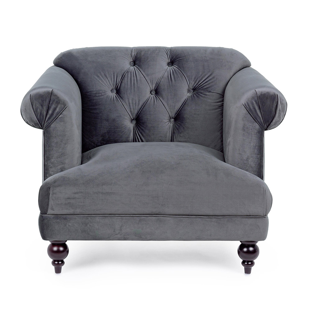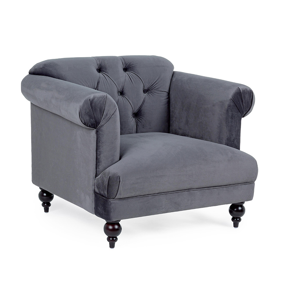 Fotoliu tapițat clasic din lemn și poliester cu efect de catifea 2 finisaje.