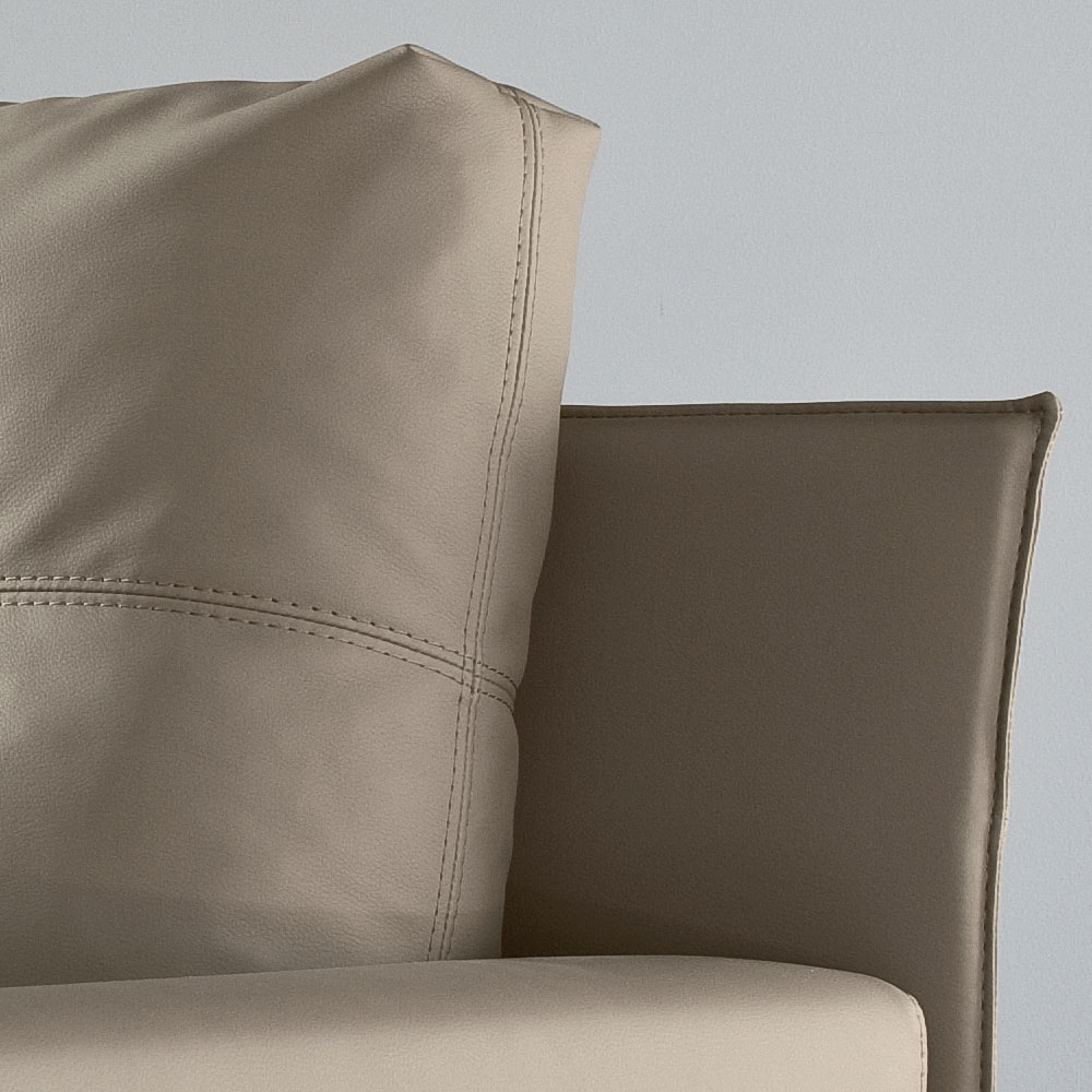 spumă poliuretanică de înaltă densitate , căptușită cu pene și fibră de poliester. Perna pentru spătar este realizată din