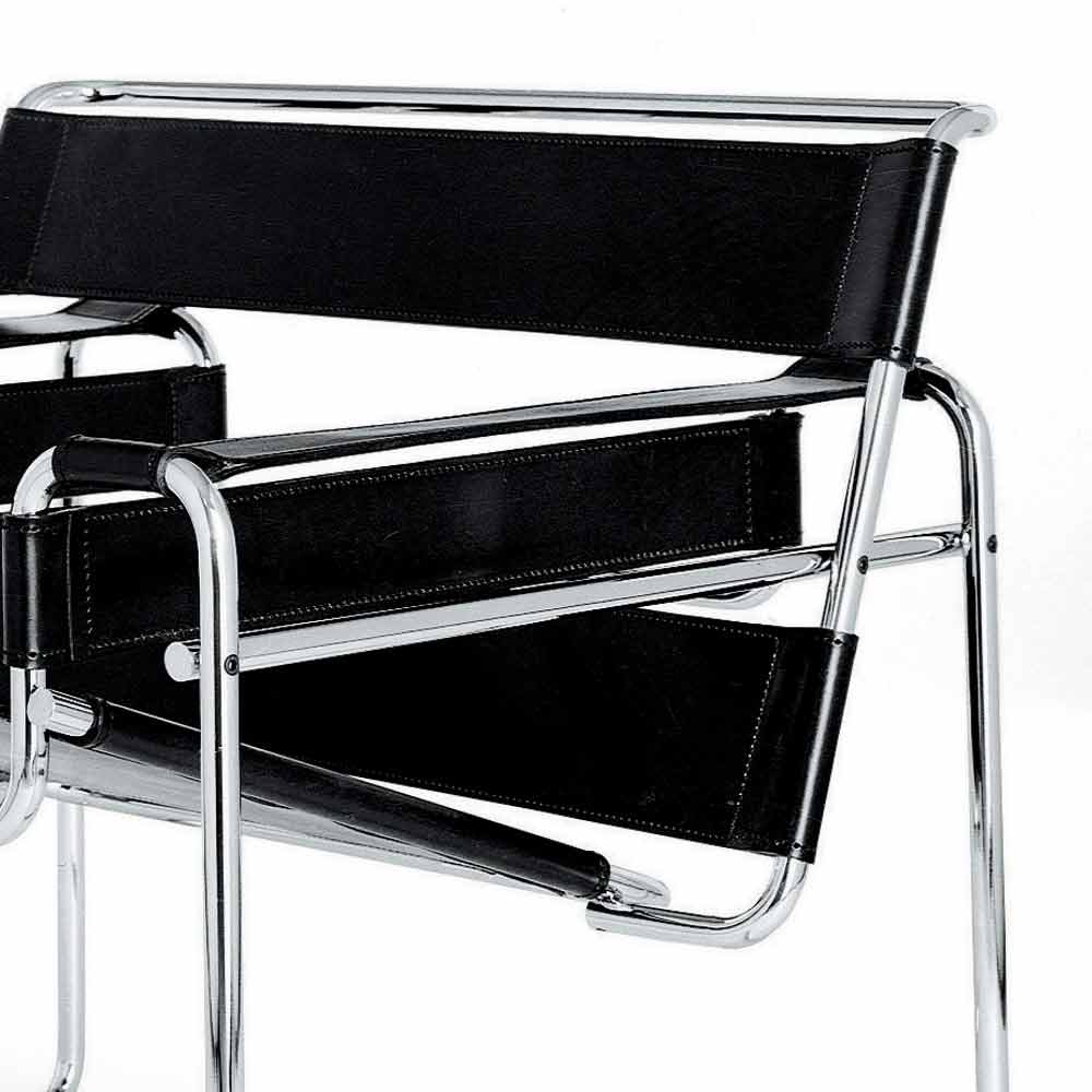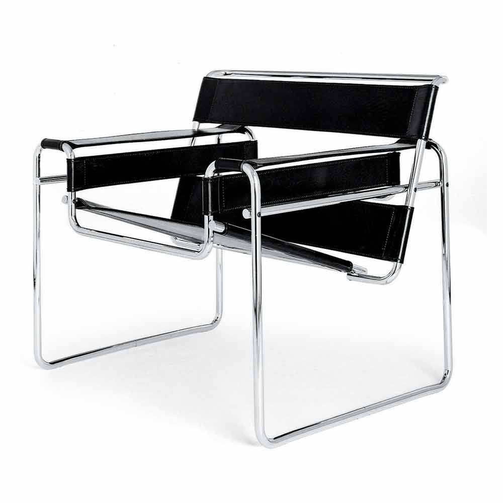 NB : fotoliul este disponibil și în versiunea din oțel vopsit și cu tapițerie din piele de ponei.