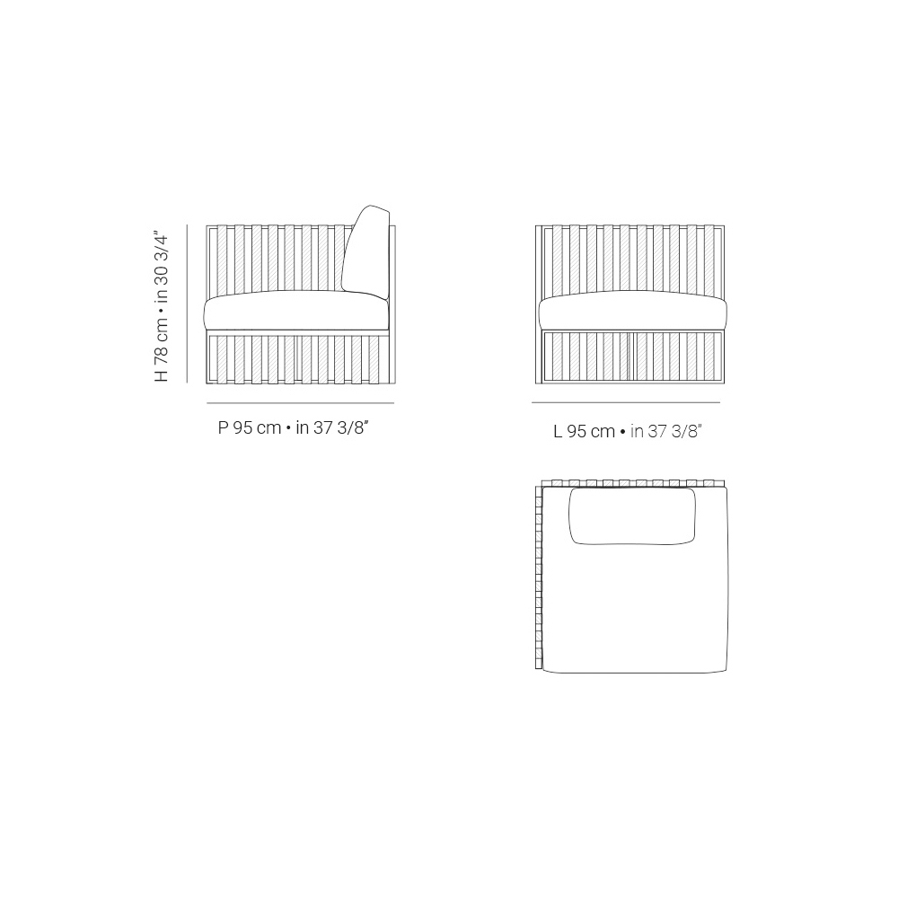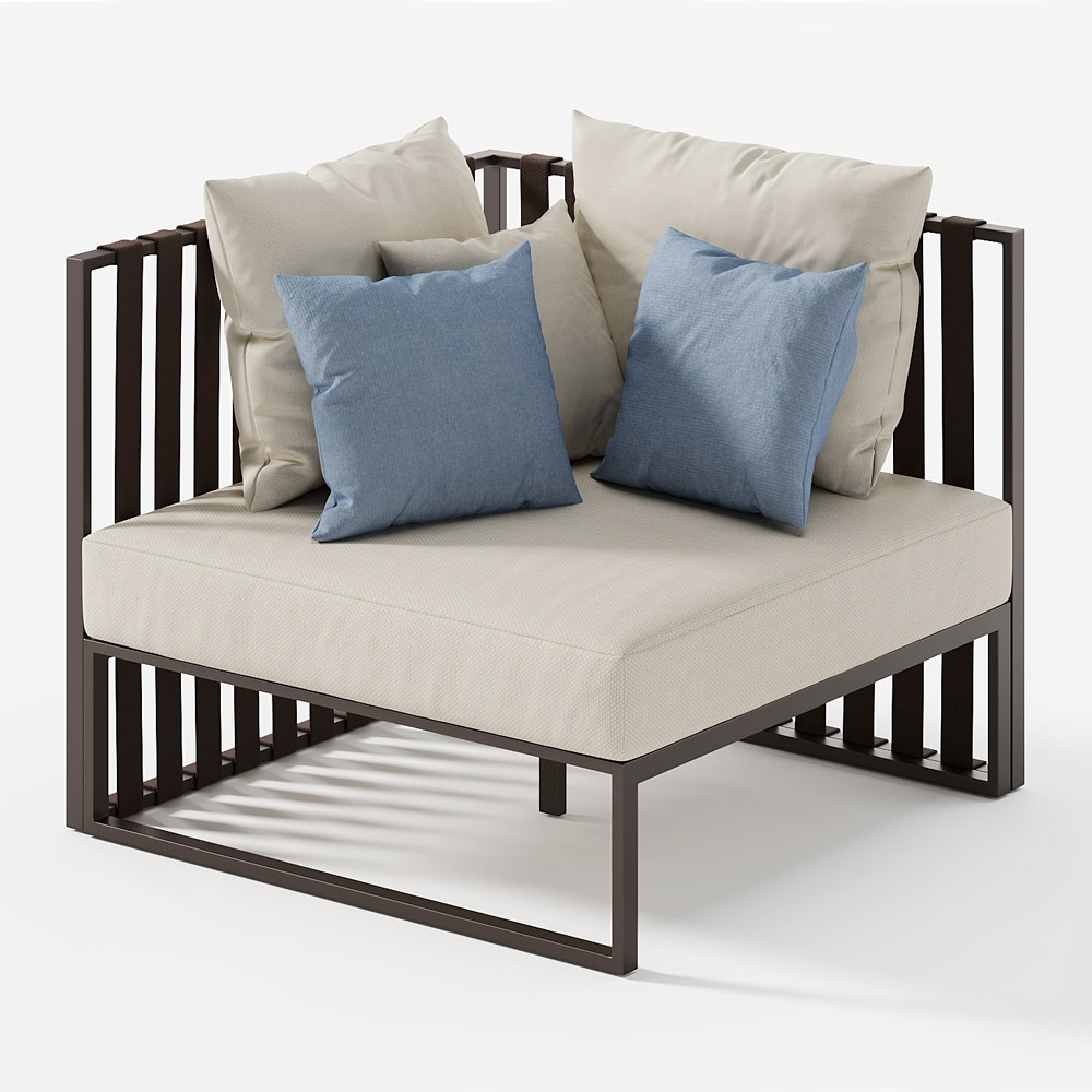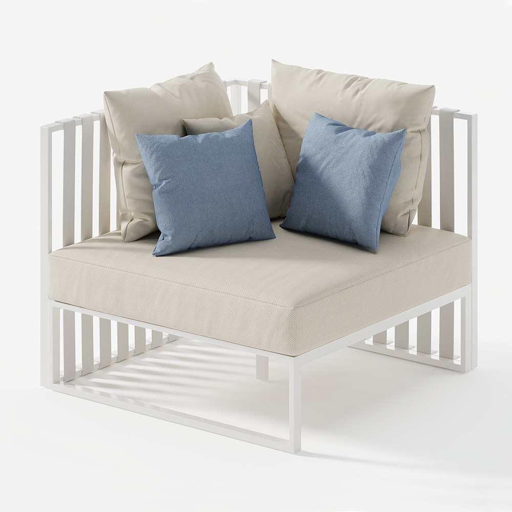 Fotoliu exterior colț drept din aluminiu și bretele cu perne căptușite Made in Italy