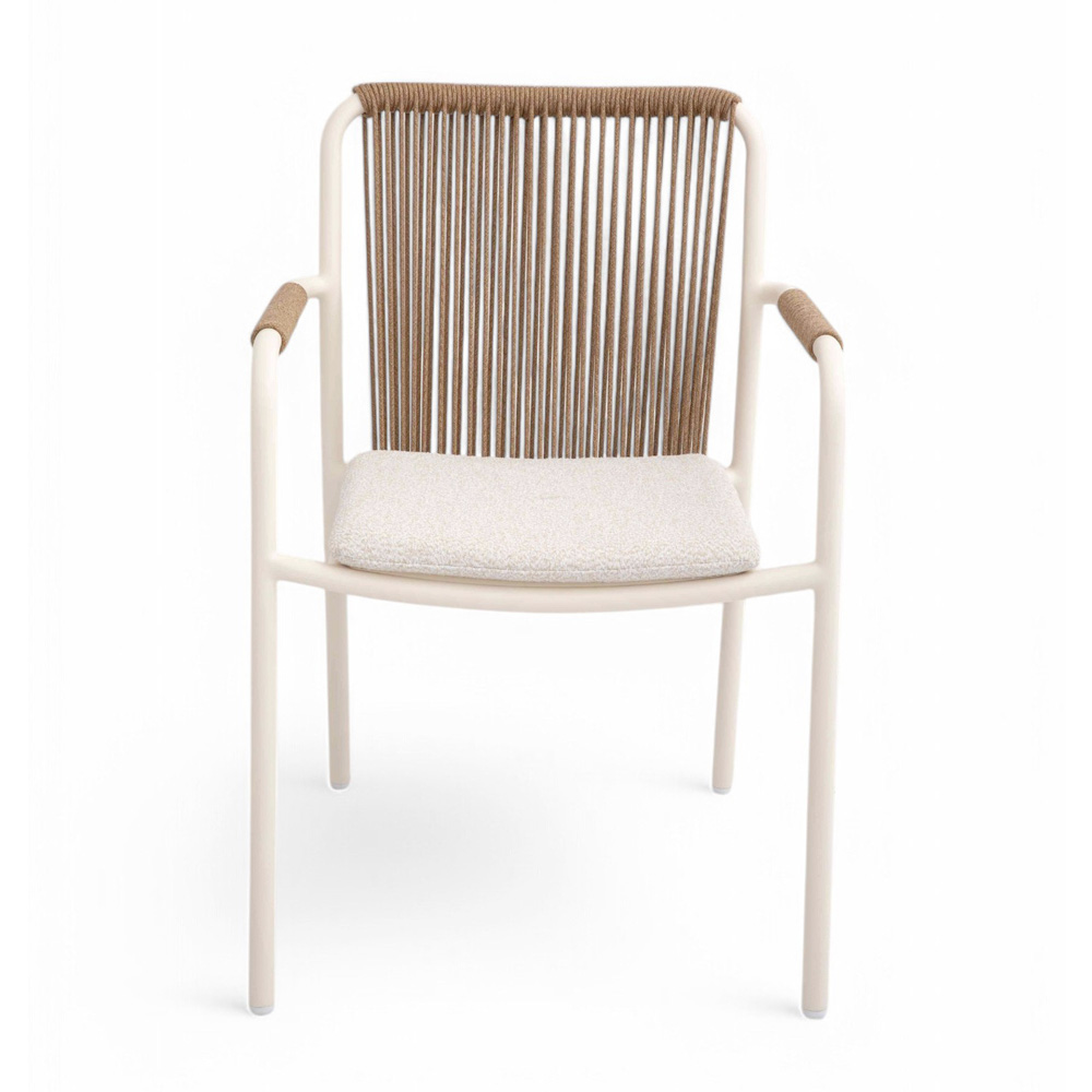Acest braci de exterior combină designul modern și confortul excepțional , fiind perfect pentru spațiul dvs. de exterior. Cadrul din metal vopsit garantează rezistență la intemperii și durabilitate în timp, în timp ce împletitura din rope adaugă o notă de eleganță naturală .