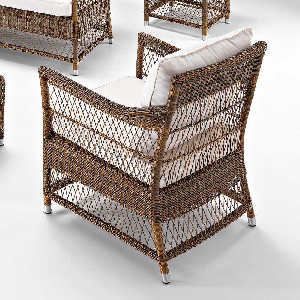 Stilul de țesătură este rafinat și delicat și împreună cu calitatea foarte ridicată a materialelor și formele sale decisive fac ca acest fotoliu să fie perfect pentru amenajarea interioarelor și exterioarelor, atât a mediilor private, cât și a celor contractuale, cum ar fi terase, verande, grădini, dar își găsesc și o locație perfectă lângă piscină.