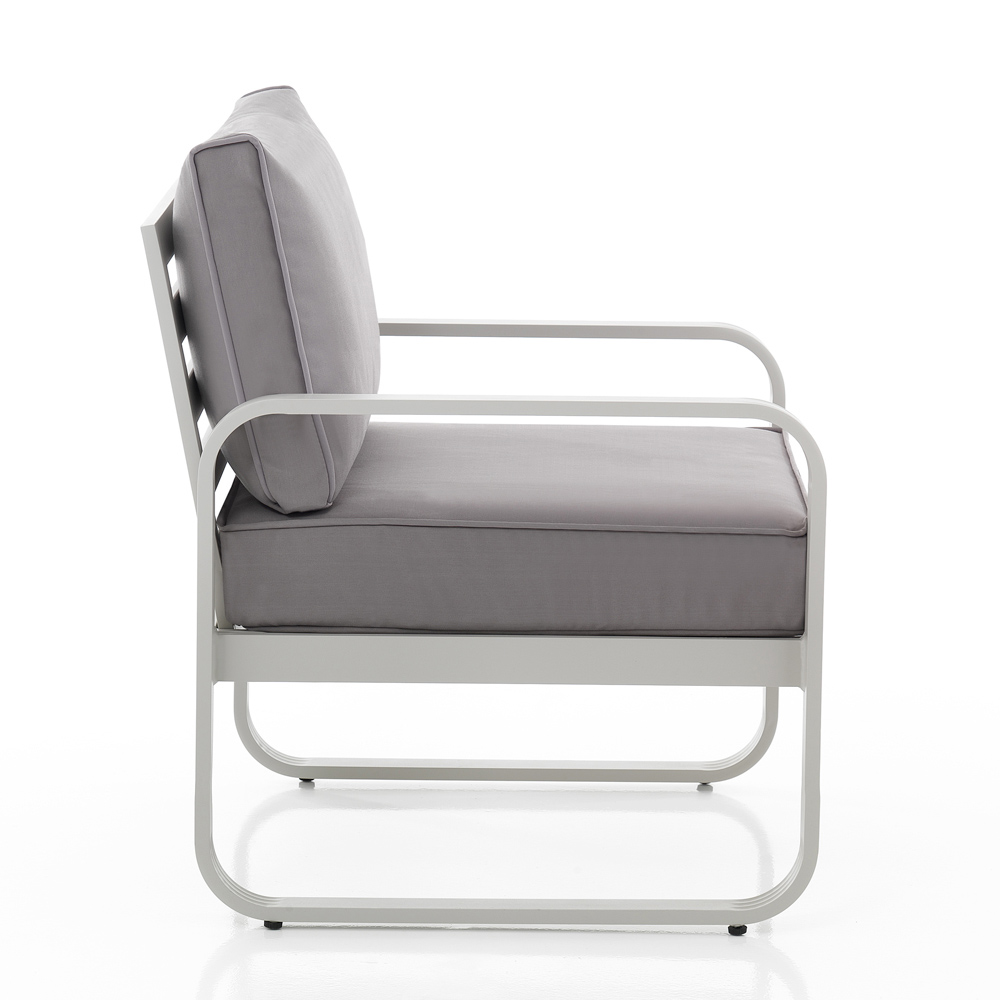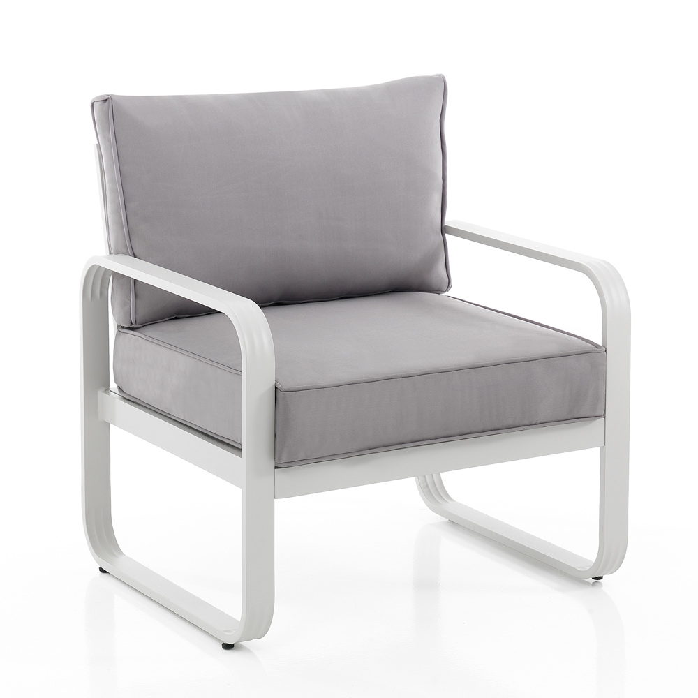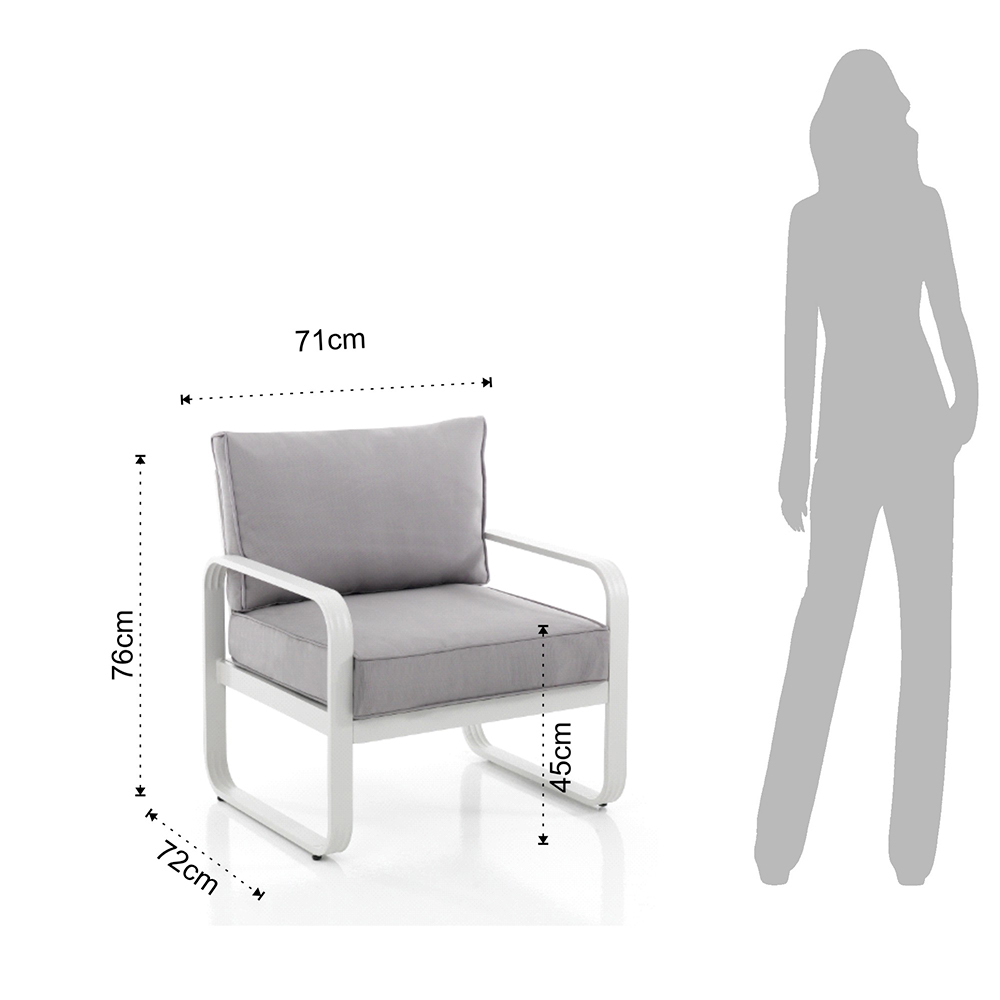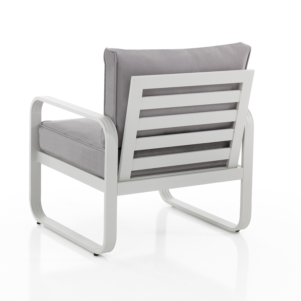 Acest fotoliu este emblema confortului minimalist pentru spatiile exterioare . Liniile sale curate și structura din aluminiu oferă o estetică modernă și captivantă care se adaptează cu versatilitate atât grădinilor moderne, cât și teraselor în stil mai clasic.