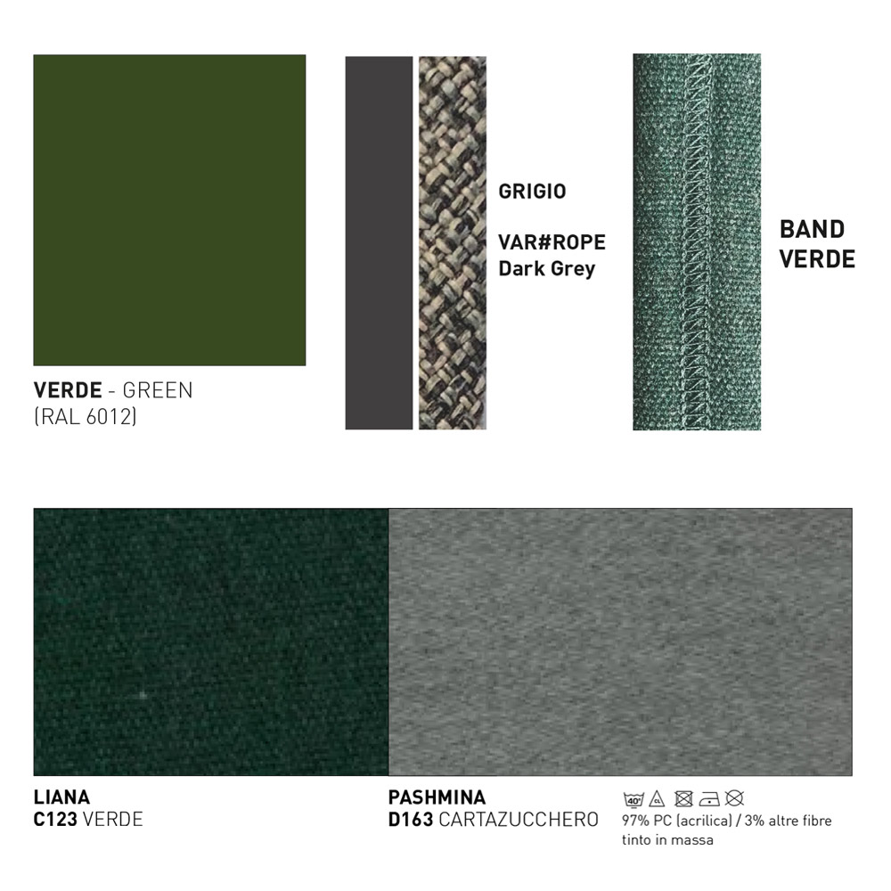 - picior verde, structură gri, țesătură și șezut verde, perne verzi pentru spătar și hârtie de zahăr.