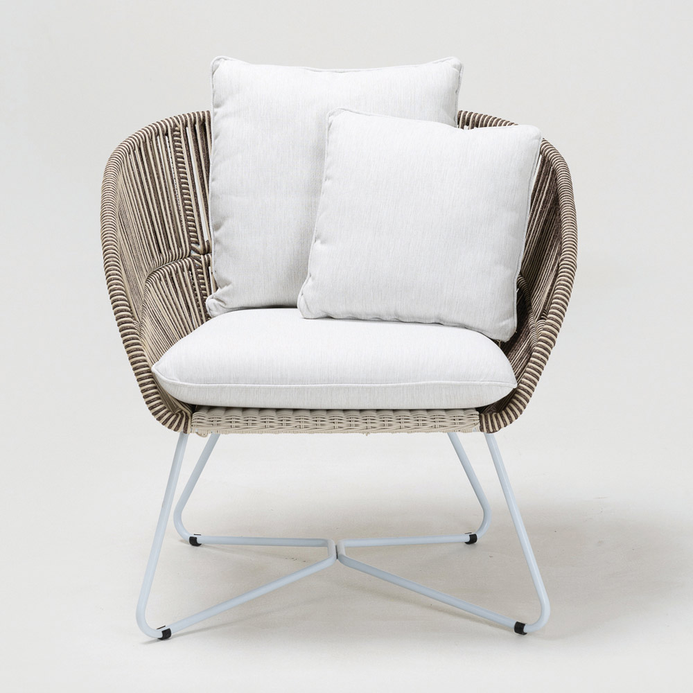 țesătură din Olefin/PP ROPE cu un finisaj bicolor alb perlat și cappuccino și pernă de șezut și spătar din