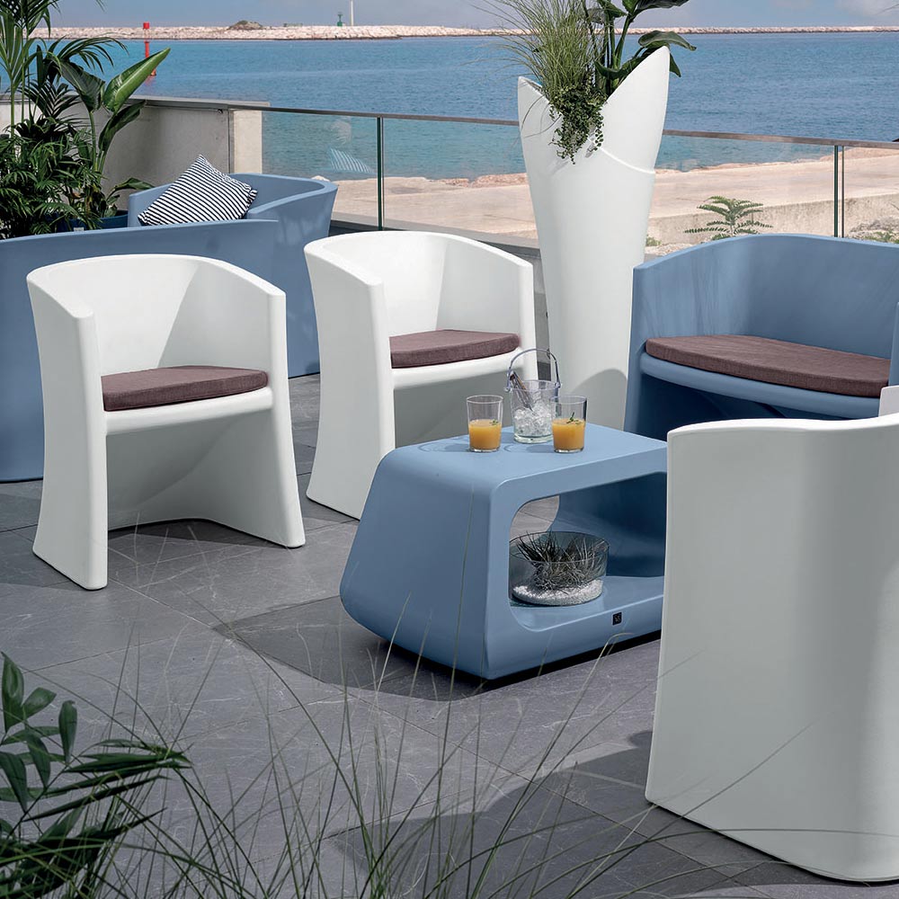 Acest fotoliu de exterior fabricat integral in Italia cu structura de polietilena colorata este conceput pentru cei care cauta practic si design in acelasi timp pentru un confort aproape invaluitor .