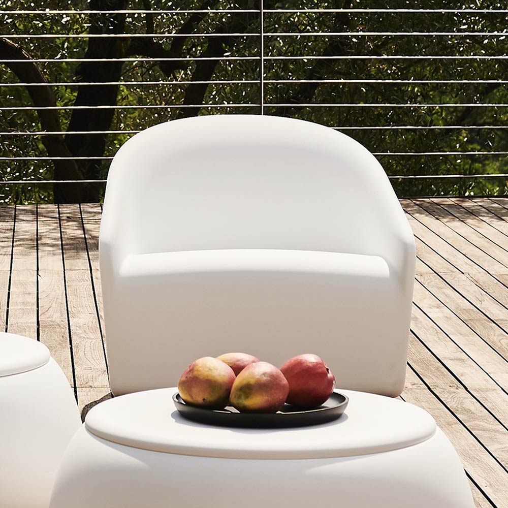 Fotoliu de grădină din polietilenă colorată opacă fabricat în Italia.