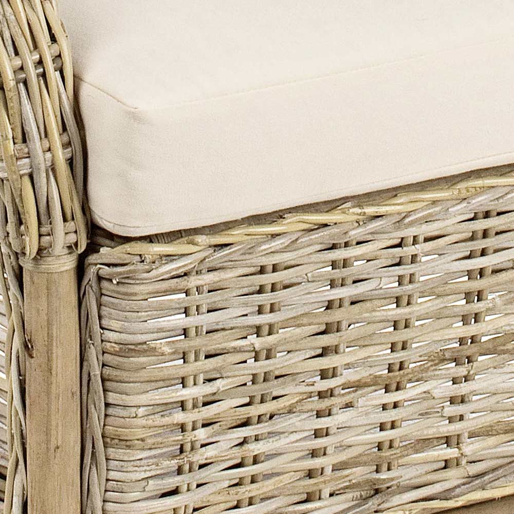 Fotoliu de gradina din ratan natural pentru exterior, dotat cu perne.