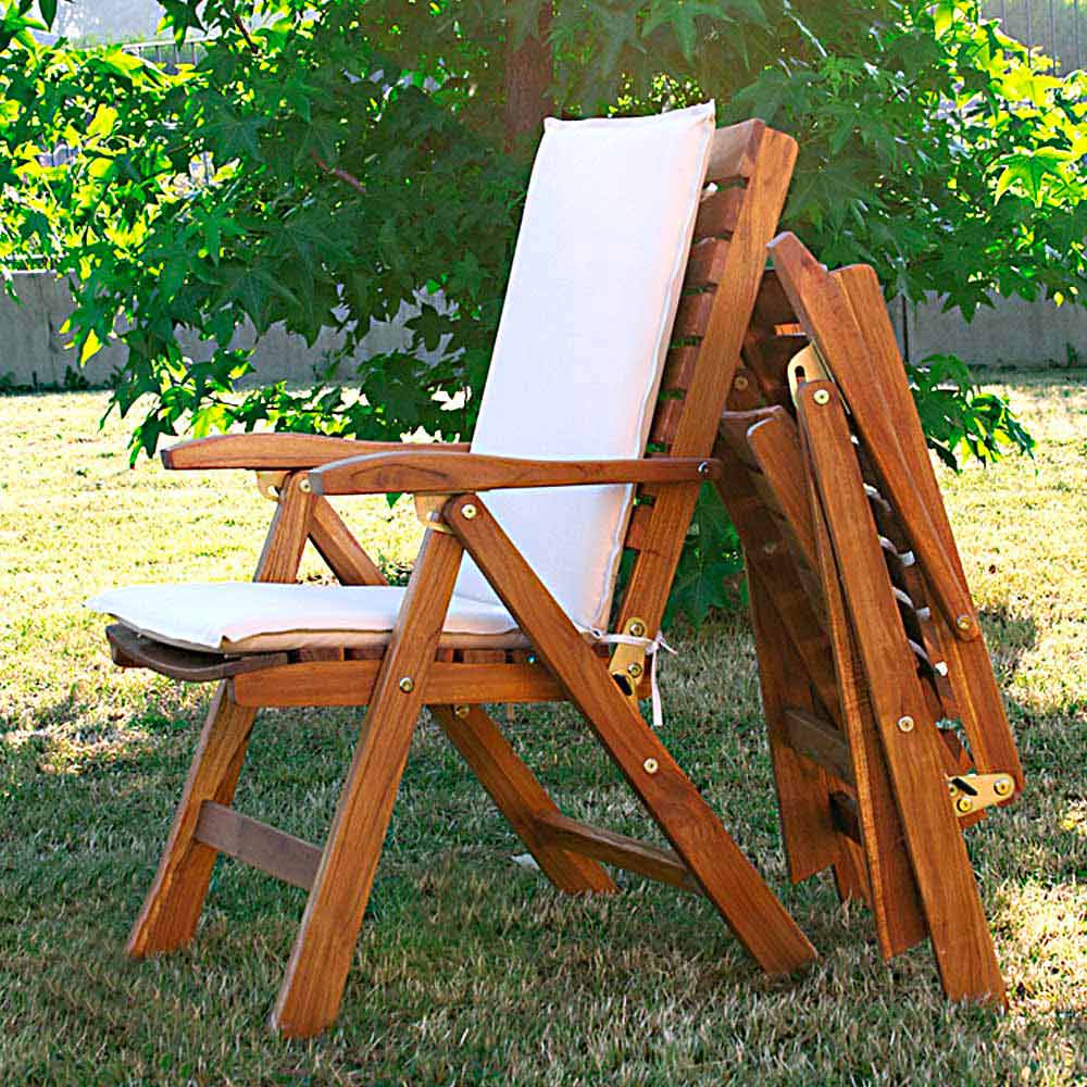 Fotoliu de grădină pliant cu perne cremă hidrofugă și spătar reglabil.