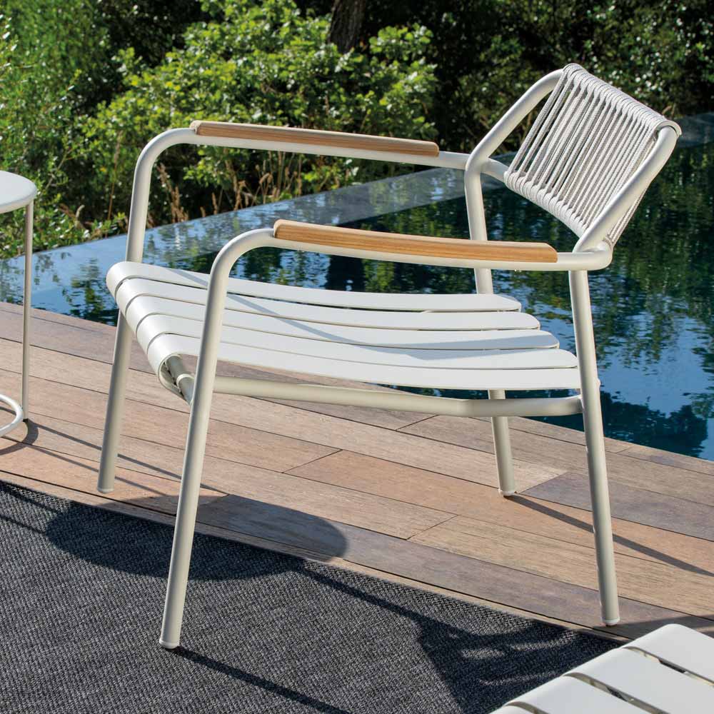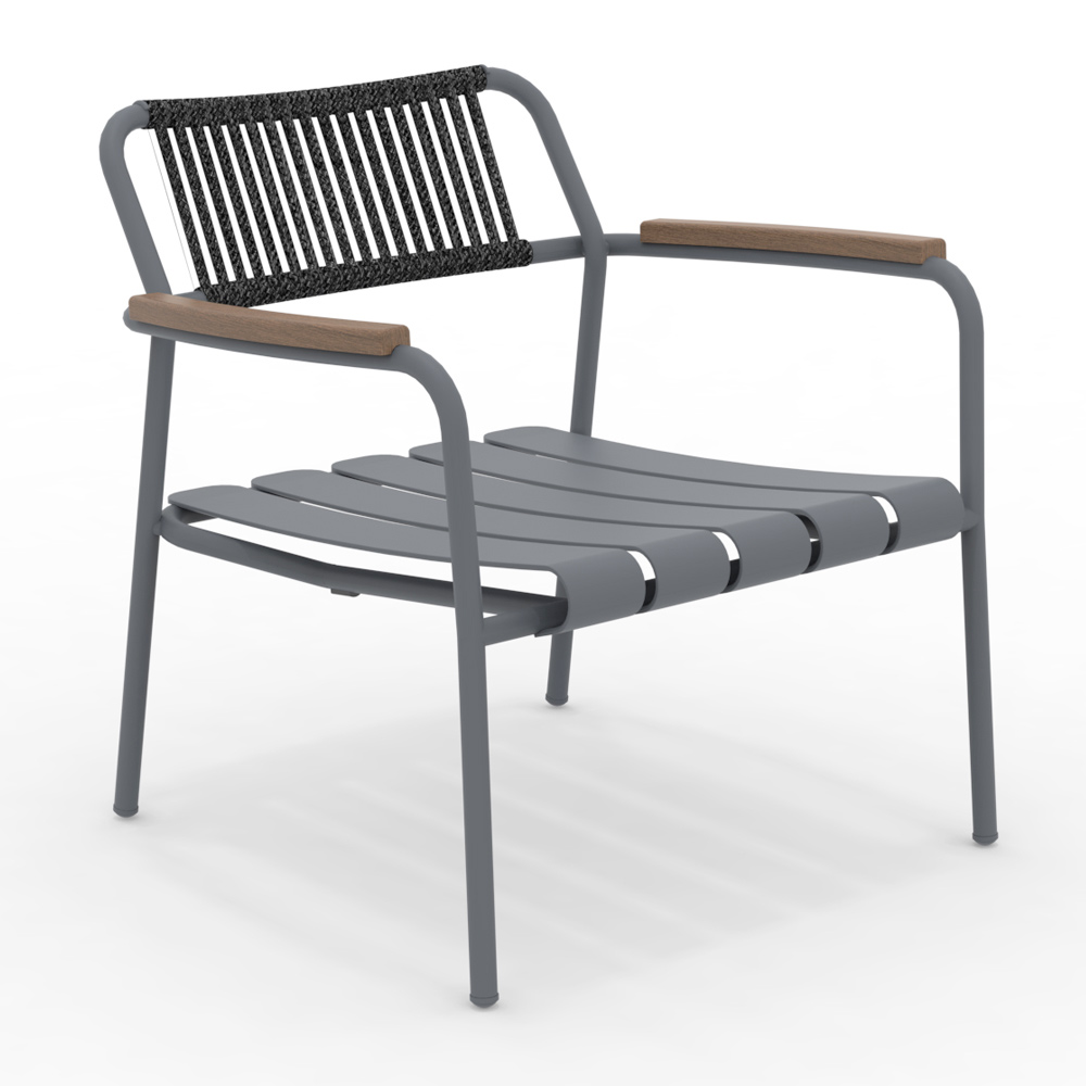 Structura ușoară, dar robustă, este concepută pentru a oferi cel mai bun confort, cu un șezut ergonomic și un spătar modelat din frânghie , care asigură un suport confortabil și relaxant. Lamelele din aluminiu conferă un aspect dinamic și modern, în timp ce finisajul adaugă o notă de eleganță și rafinament.