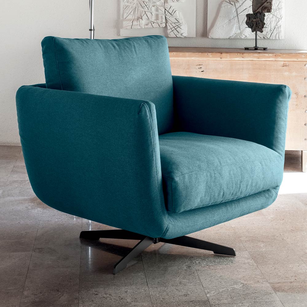 metal vopsit de culoare antracit. Fotoliul reprezintă o fuziune armonioasă între confort și stil modern. Designul elegant cu linii moi și rotunjite evocă o senzație de confort, în timp ce structura robustă asigură durabilitatea în timp. Tapițeria din material textil de înaltă calitate, împreună cu pernele mari și confortabile, promit o experiență relaxantă. Picioarele subțiri și geometrice adaugă o notă sofisticată, făcând din fotoliu o piesă de design fascinantă. Acest fotoliu este ideal pentru cei care caută o soluție de amenajare care să îmbine estetica modernă și confortul impecabil.