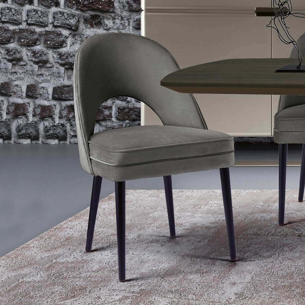 Fotoliu de sufragerie din lemn cu sezut imbracat in material Made in Italy