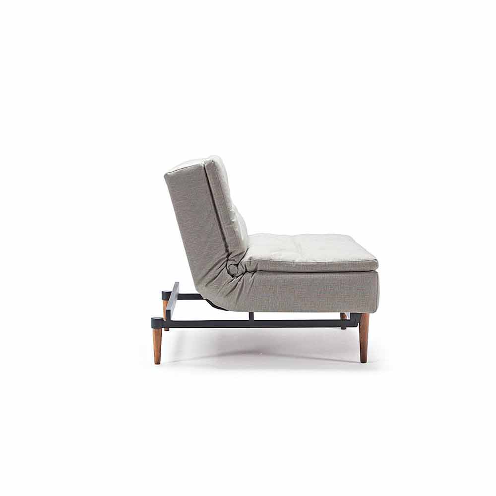 Pat fotoliu cu design scandinav și stil nordic, reglabil în 3 poziții Dublexo by Innovation , picioare din lemn închis la culoare, structură din oțel negru mat.