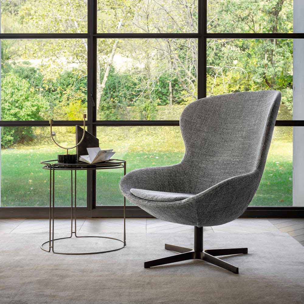 Fotoliu din țesătură și metal cu bază pivotantă Fabricat în Italia, de înaltă calitate.