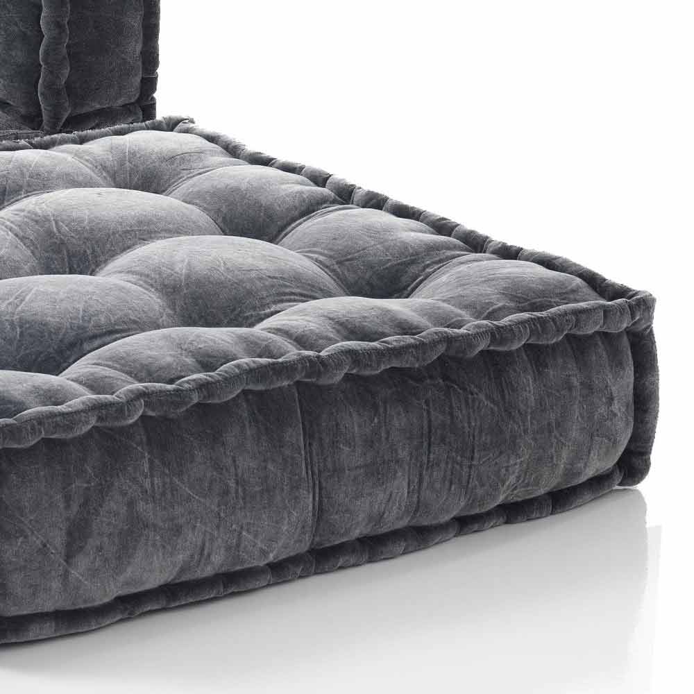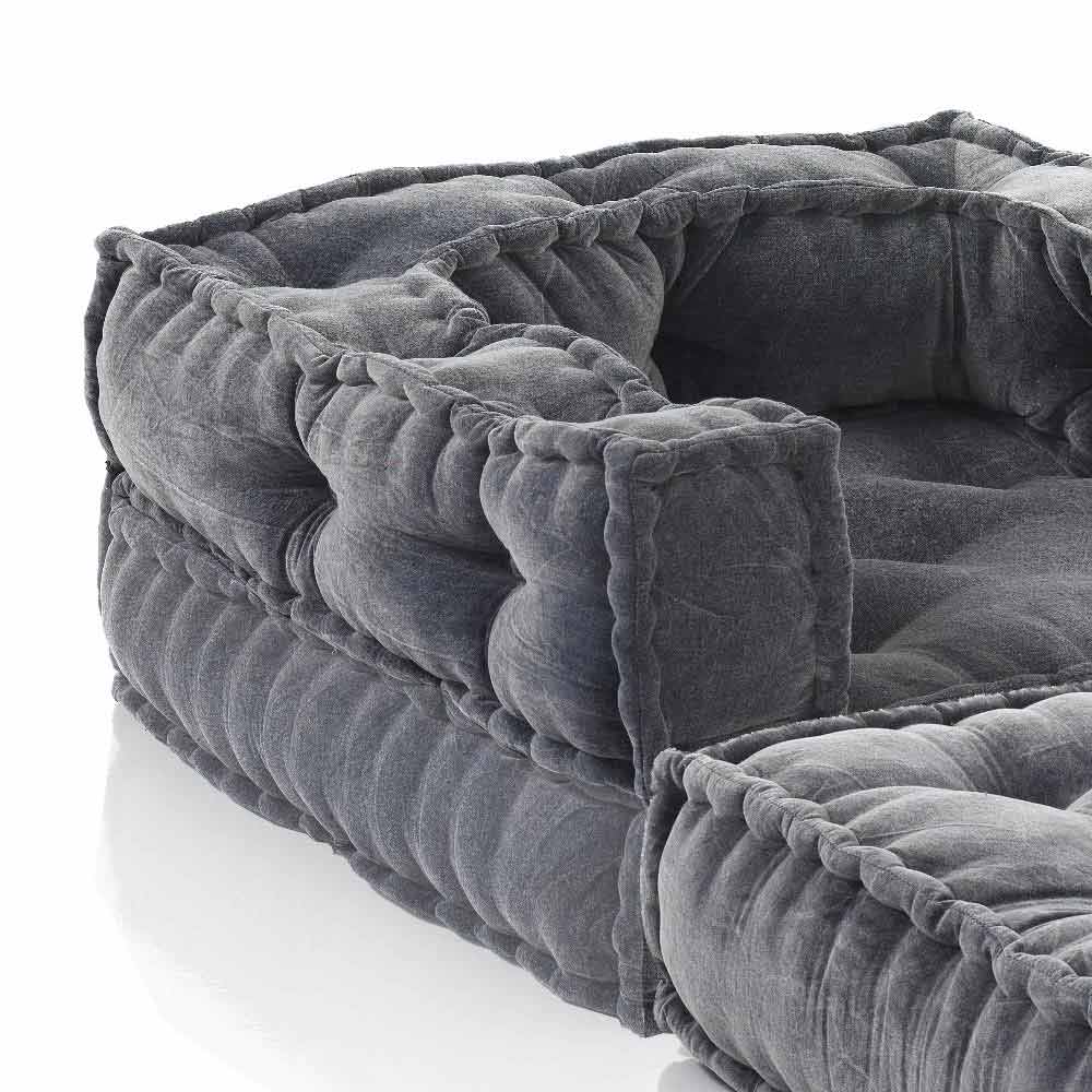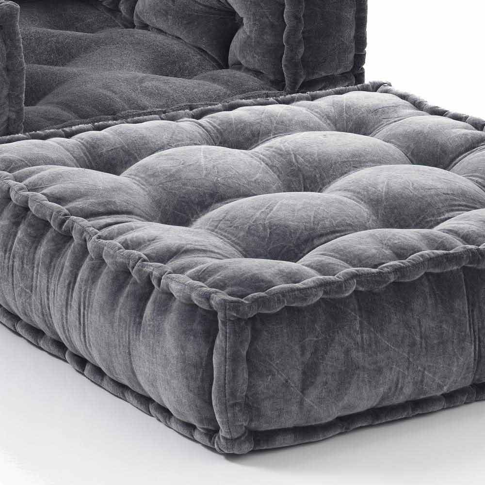 Fotoliu șezlong, cu șezlong, confecționat din catifea gri sau albastru și alb.