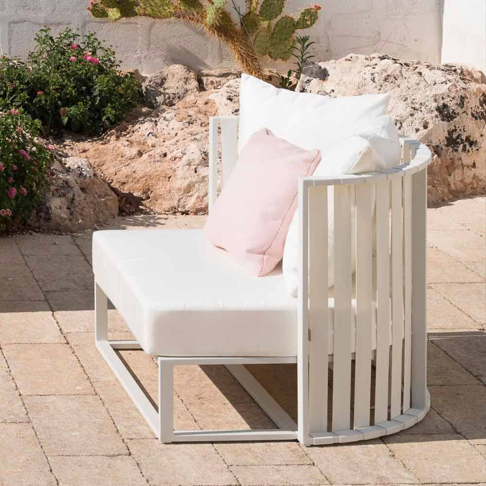 Fotoliu de relaxare de grădină de lux din aluminiu și frânghie cu perne din țesătură, diverse finisaje.