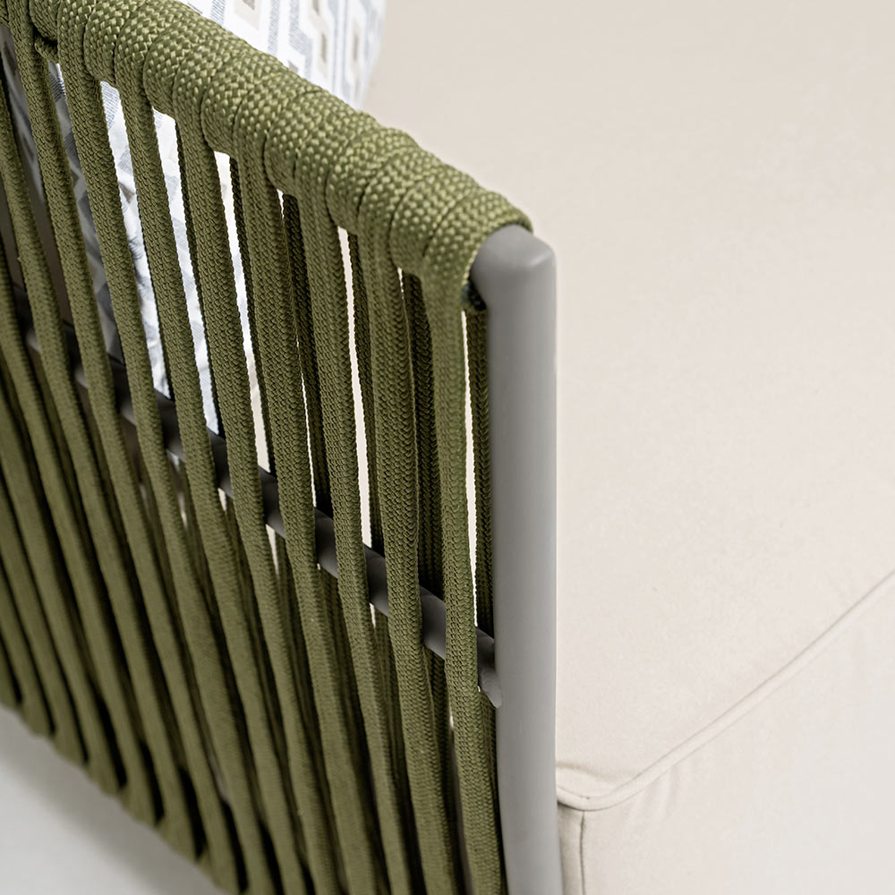 Acest fotoliu cu scaune mari este ușor de manevrat și rezistent, dar în același timp păstrează un design curat și esențial. Stilul său modern îi conferă un caracter puternic, făcându-l perfect pentru amenajarea spațiilor exterioare atât în mediul privat, cât și în cel contractual.