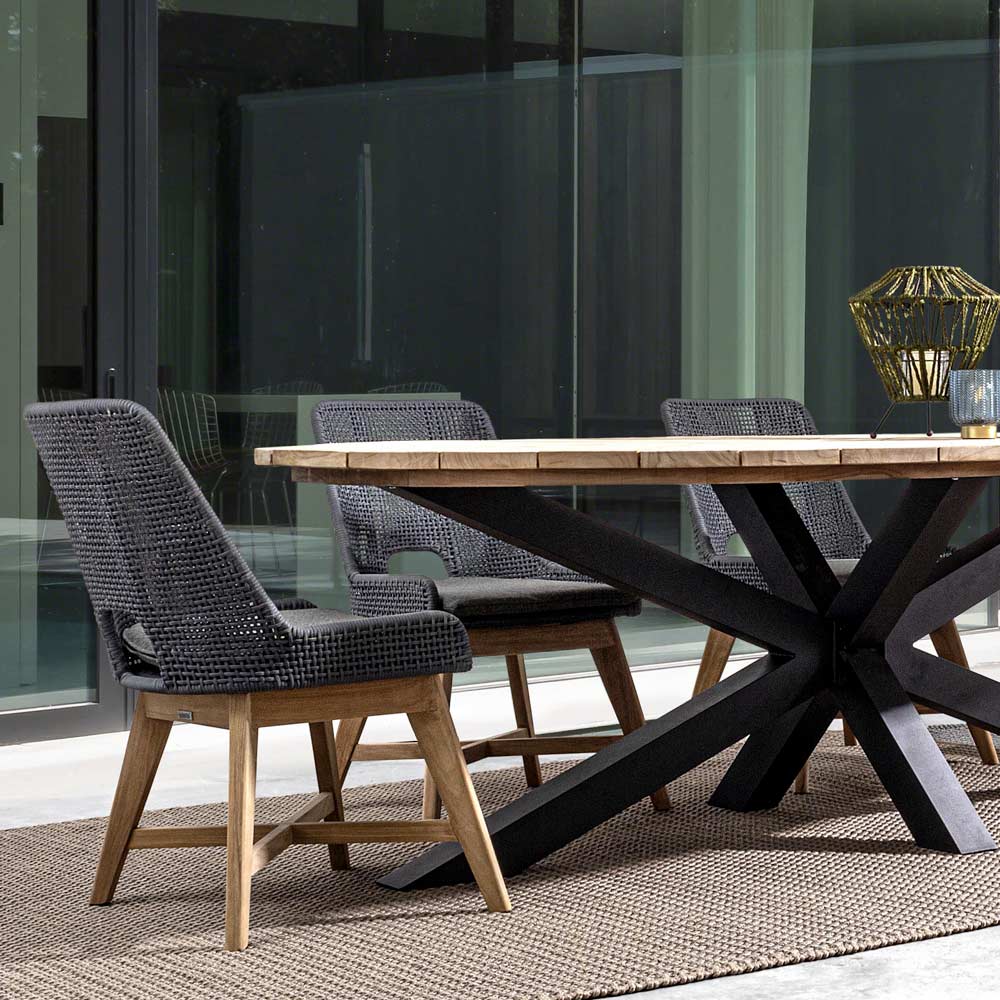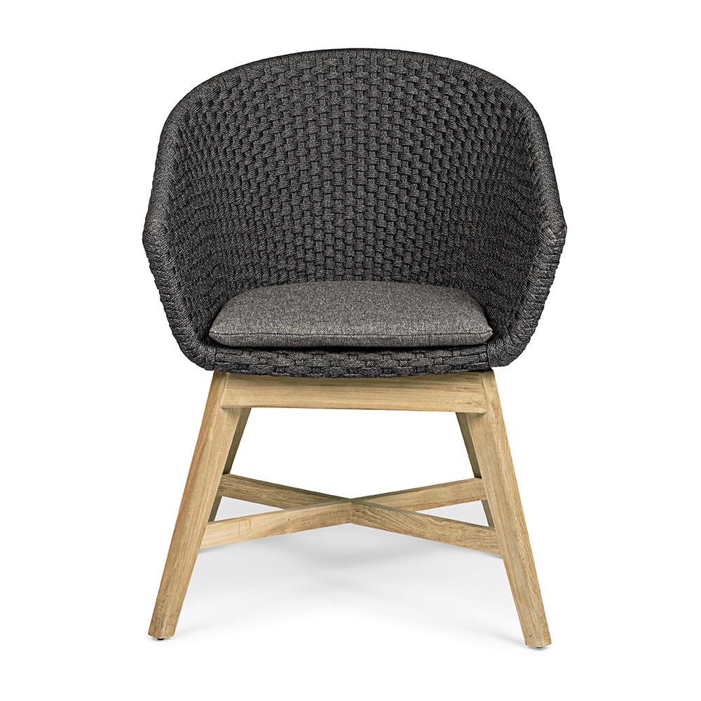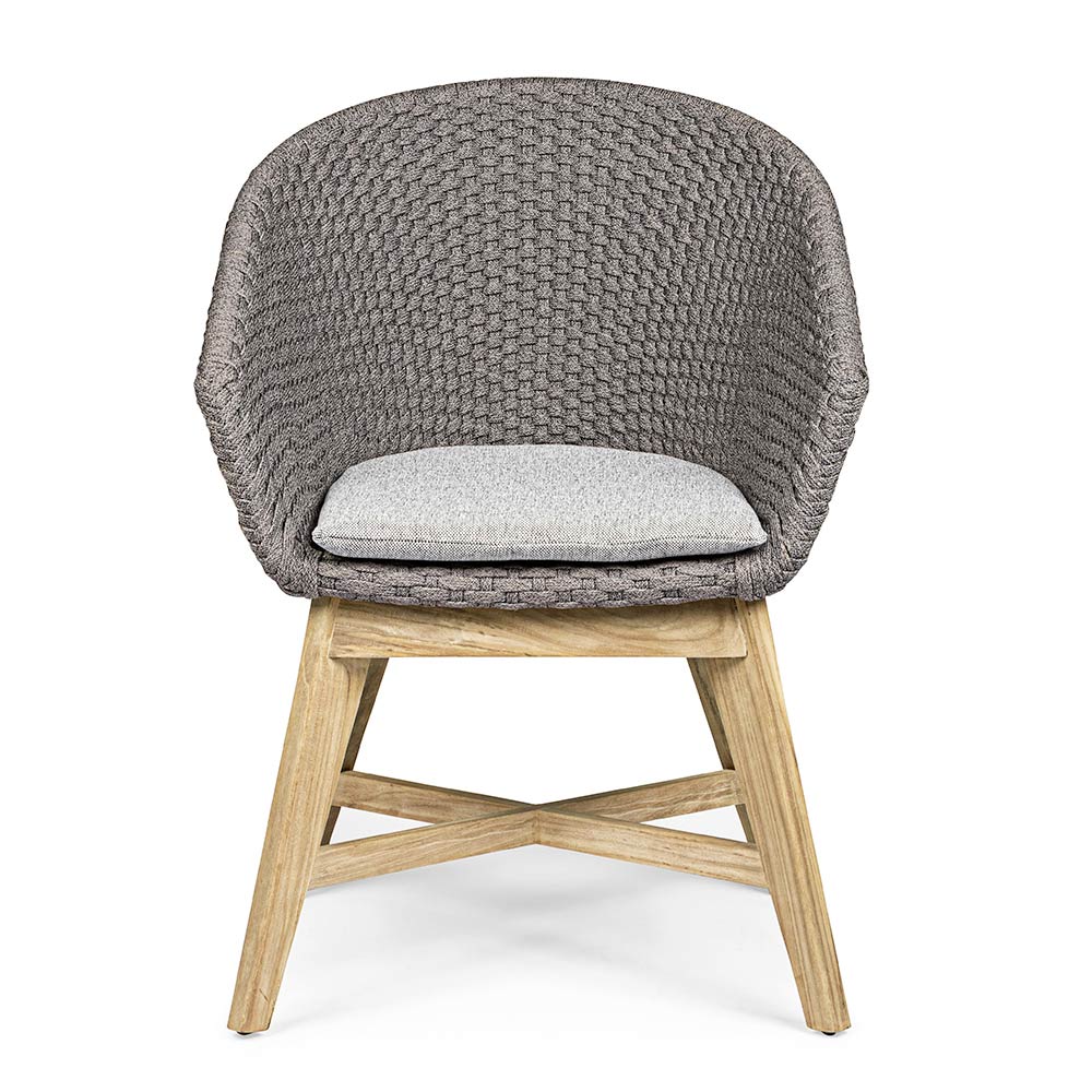 Fotoliu exterior din lemn de tec, cu frânghie și scaun din țesătură, 2 piese de calitate.