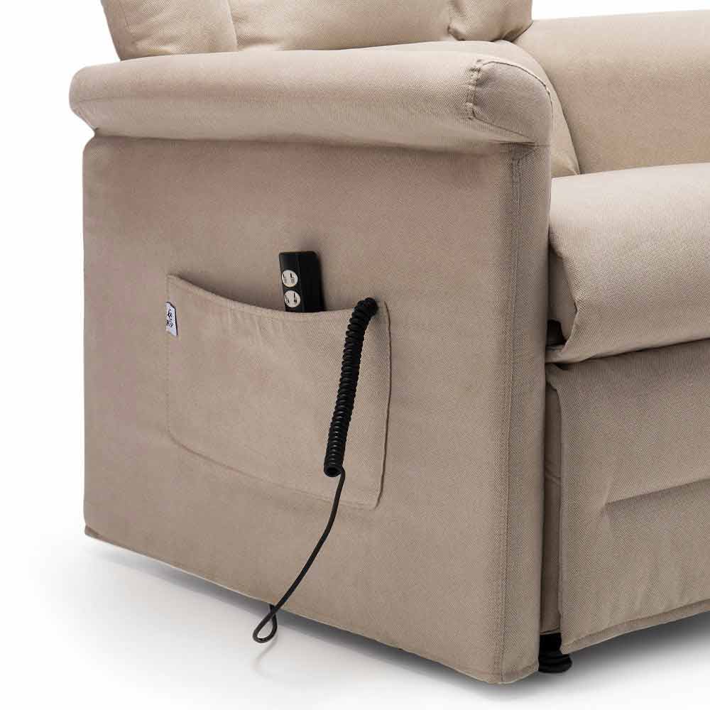 Scaun de ridicare înclinabil proiectat cu funcții de ridicare și relaxare cu 2 motoare, cu roți Roller System, fabricat în Italia Isabelle.