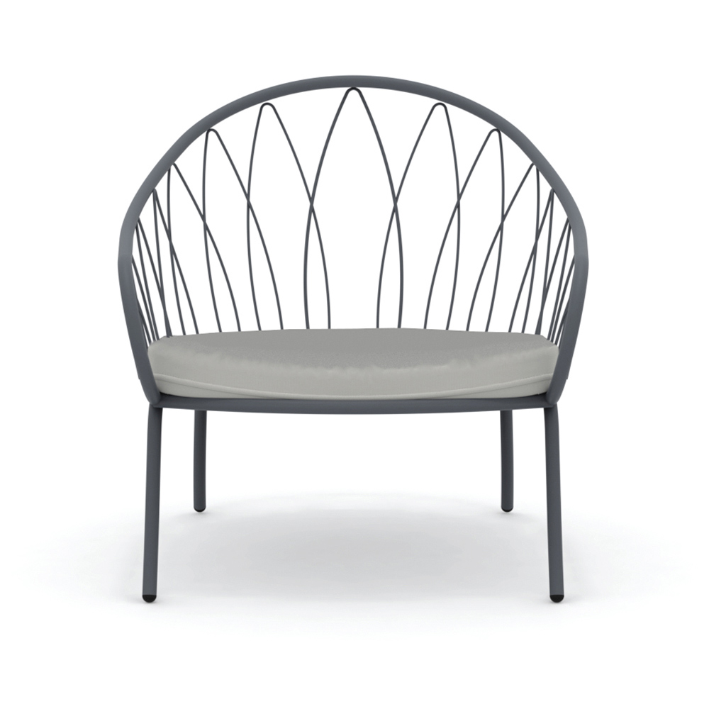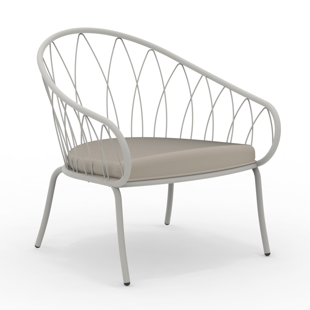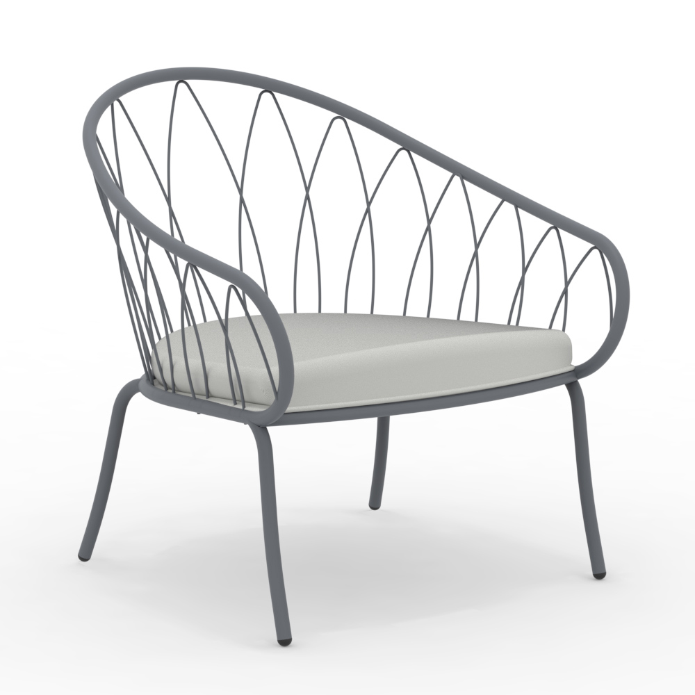 Fotoliu de grădină jos cu structură din fier galvanizat vopsit în câmp electrostatic și șezut din material textil Fabricat în Italia