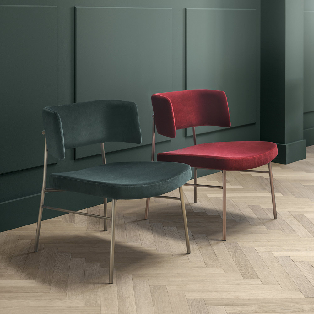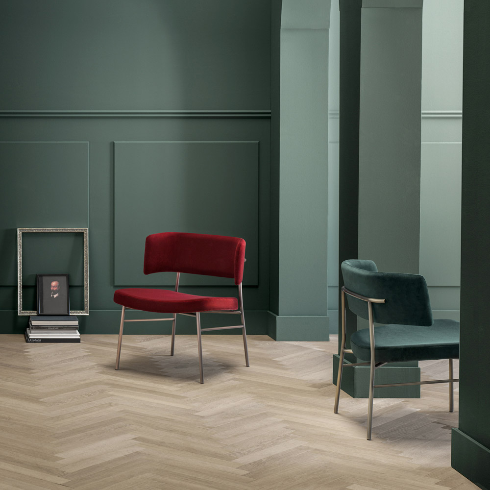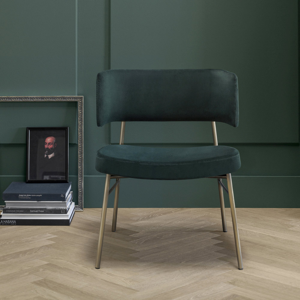 linii simple care îmbrățișează întreaga structură și rafinamentul atemporal al catifelei, un material de mare valoare și cu un aspect fascinant. Datorită și formei sale, acest minunat fotoliu asigură un scaun ergonomic și primitor, studiat și conceput pentru a oferi momente dedicate relaxării în care să te lași răsfățat.