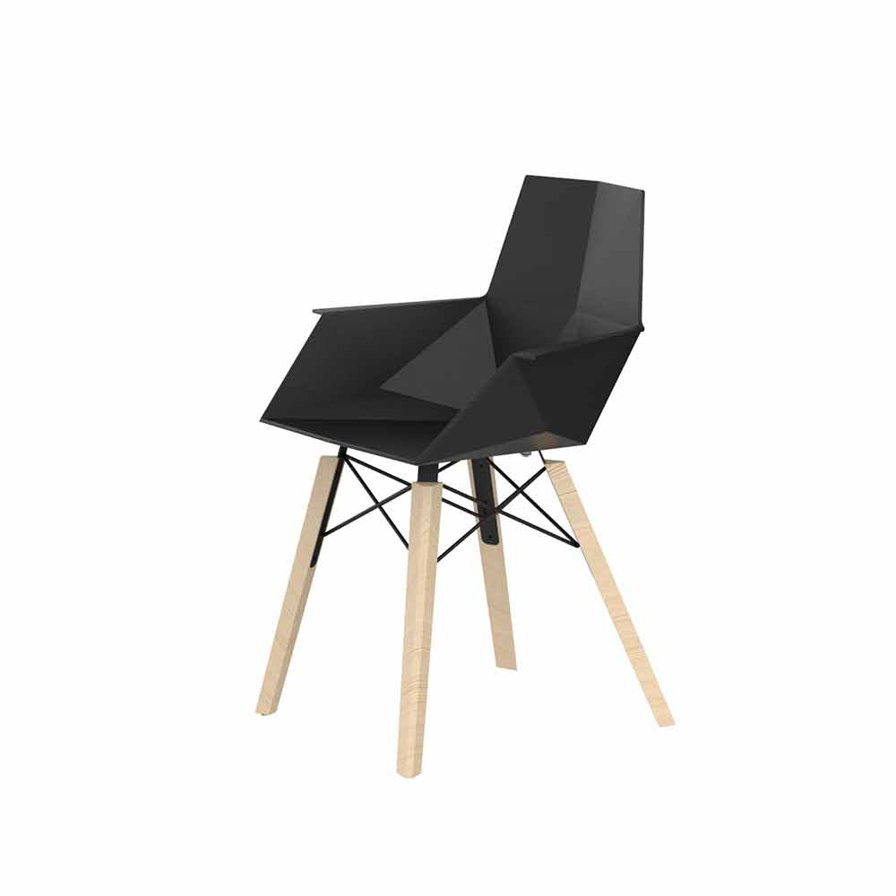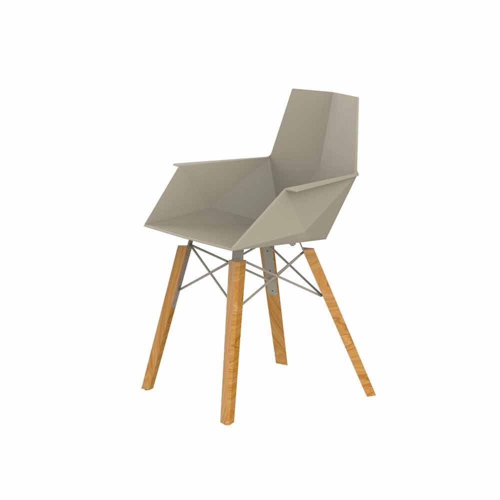 Fotoliu design din polipropilenă cu structură din lemn de frasin și scaun și spătar din polipropilenă în diferite culori.