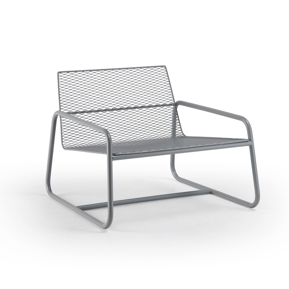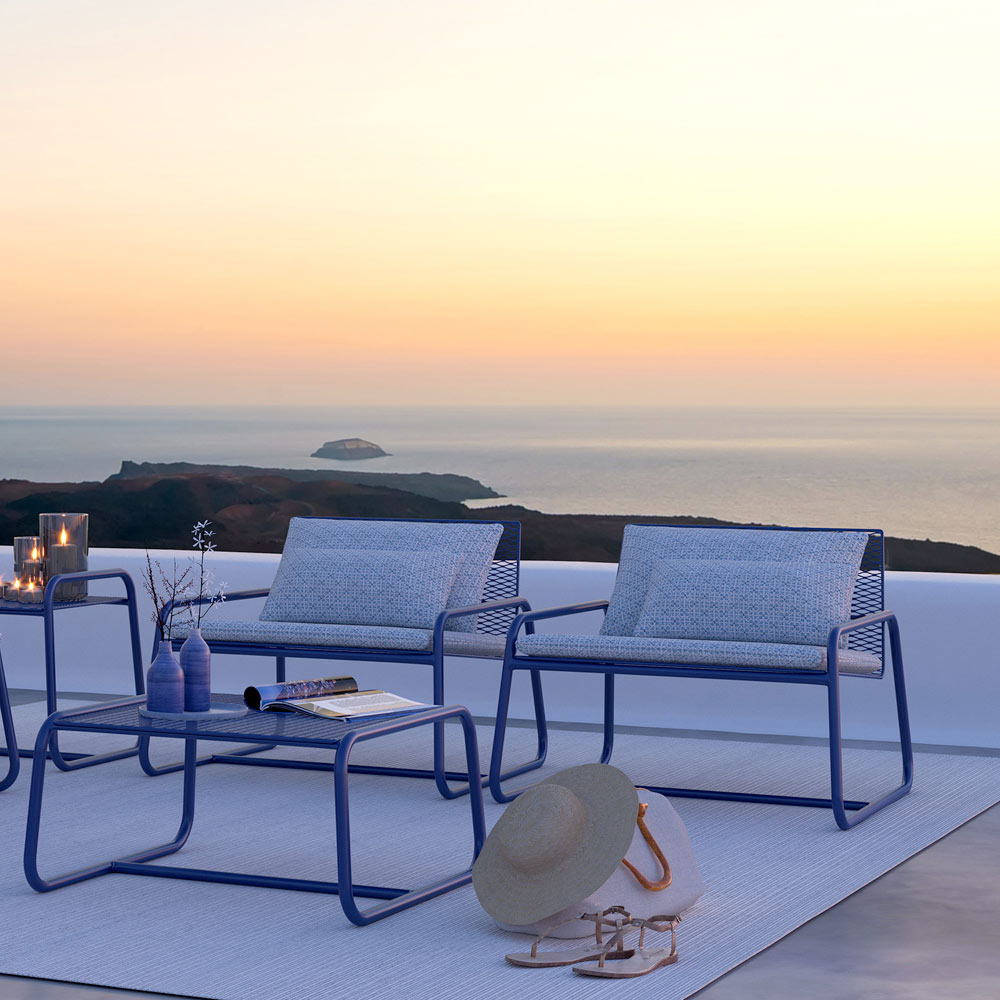 Fotoliu de exterior din metal cu perne din țesătură coordonate, fabricat în Italia de înaltă calitate.