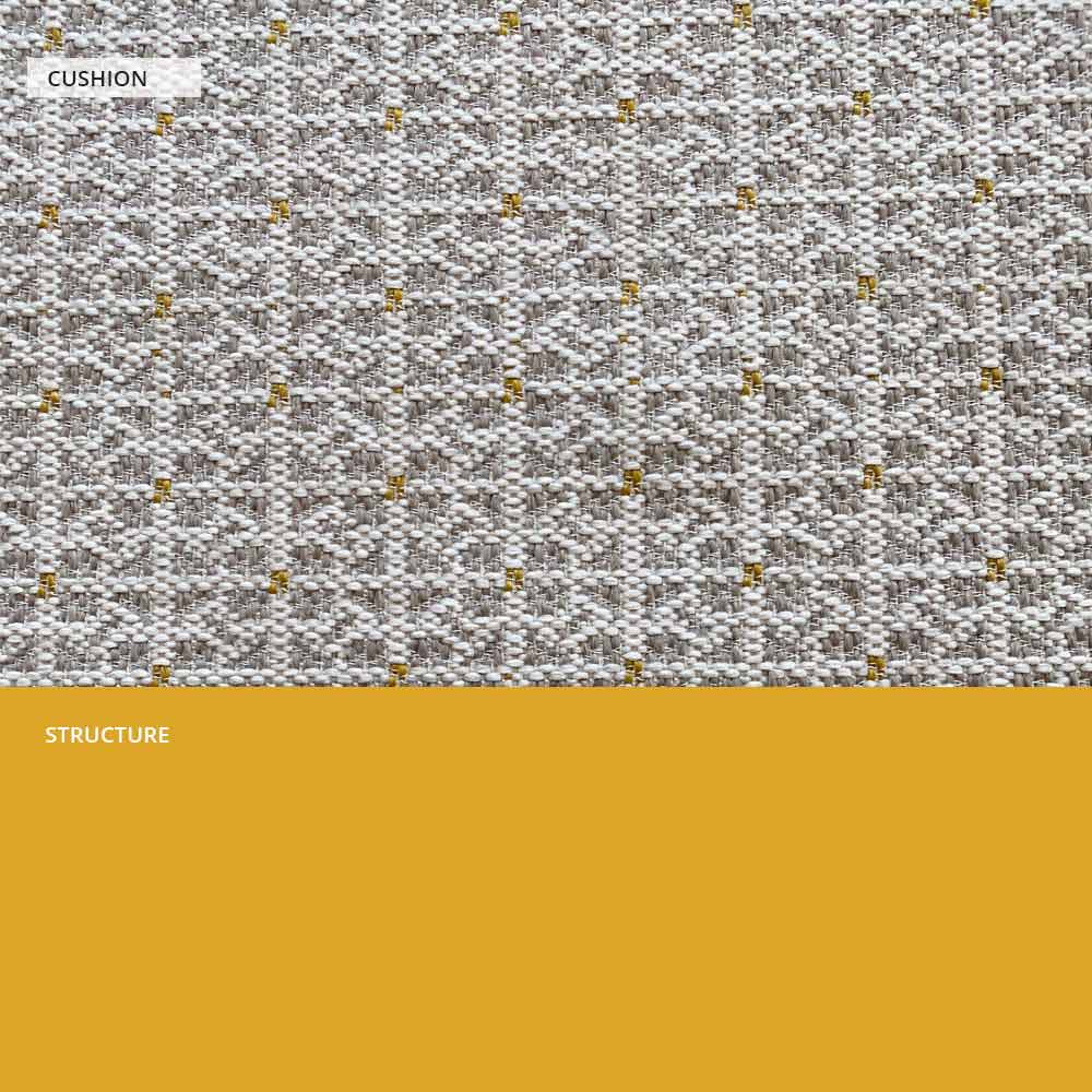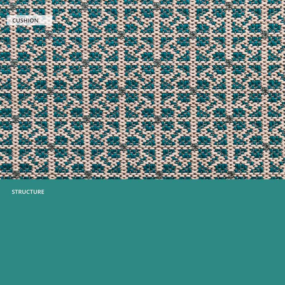 fotoliu de exterior are un design riguros, cu un gust decisiv contemporan, dar silueta solidă și impunătoare este înmuiată de cotiere mari rotunjite și țesătura de exterior coordonată pentru cele 3 perne incluse pentru scaun, spătar și mobilier.
