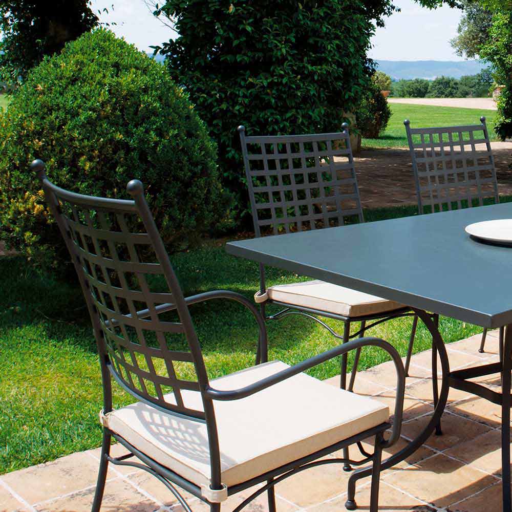 Fotoliu de exterior din fontă galvanizată vopsită în câmp electrostatic, cu cotiere suprapuse, fabricat în Italia, 4 bucăți.