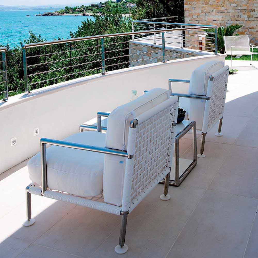 Fotoliu pentru exterior, din oțel și pvc negru sau alb, design modern fabricat în Italia.