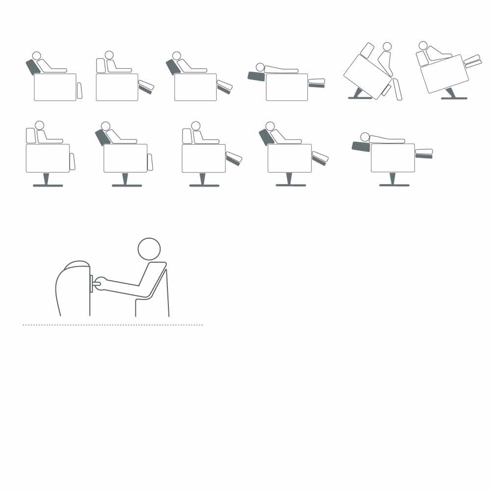 Mecanisme cu unul sau două motoare , alternativ mișcări autonome sau independente ale suportului pentru picioare și spătarului , funcție de ridicare , dispozitiv de ridicare care vă permite să vă asumați cu ușurință poziția verticală, vibromasaj pentru un efect plăcut distribuit pe spătar, șezut și picior, mișcare automată sau motorizată, acestea sunt posibilitățile și combinațiile dezvoltate: un set armonios de soluții pentru a satisface orice tip de nevoie.