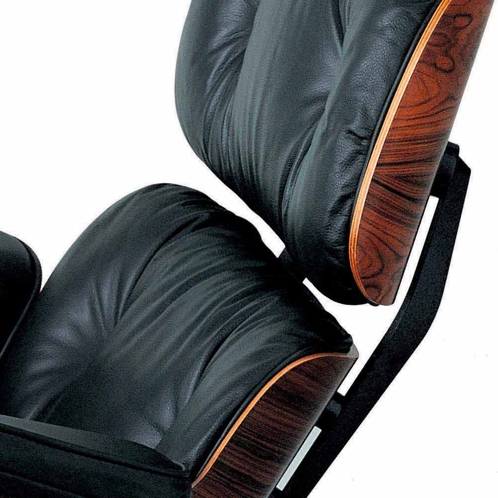 Fotoliu pivotant fabricat în întregime în Italia cu bază din aluminiu, coajă din lemn de trandafir, perne din spumă poliuretanică și fibră de poliester și tapițerie din piele completată cu puf de sprijin pentru picioare care se potrivește cu fotoliul. O idee de mobilier care îmbină în sine eleganța materialelor alese și funcționalitatea conformațiilor sale, oferind un