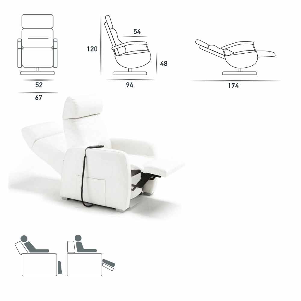Fotoliu pivotant cu 2 motoare, modern, fabricat în Italia Cassia