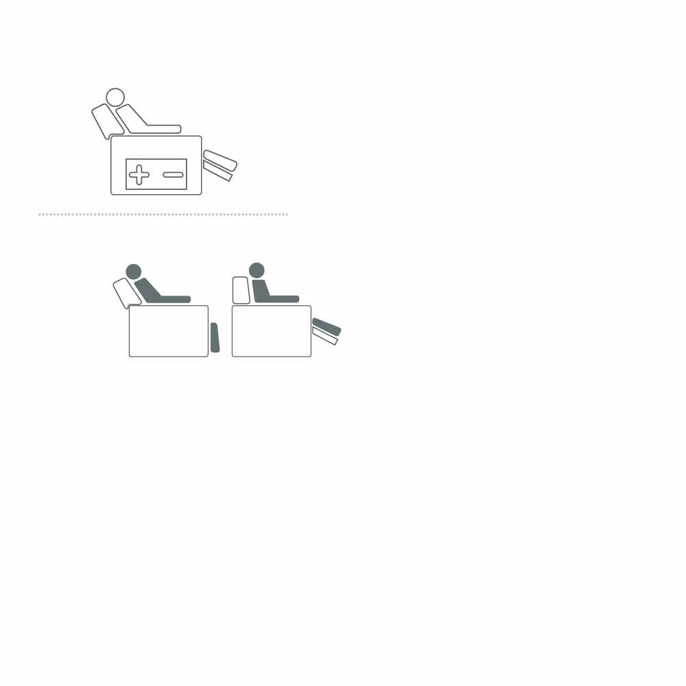 Poziția sau citirea televizorului : spătarul rămâne în poziție pentru a perpetua scaunul și piciorul se deschide pentru a asigura confortul picioarelor.