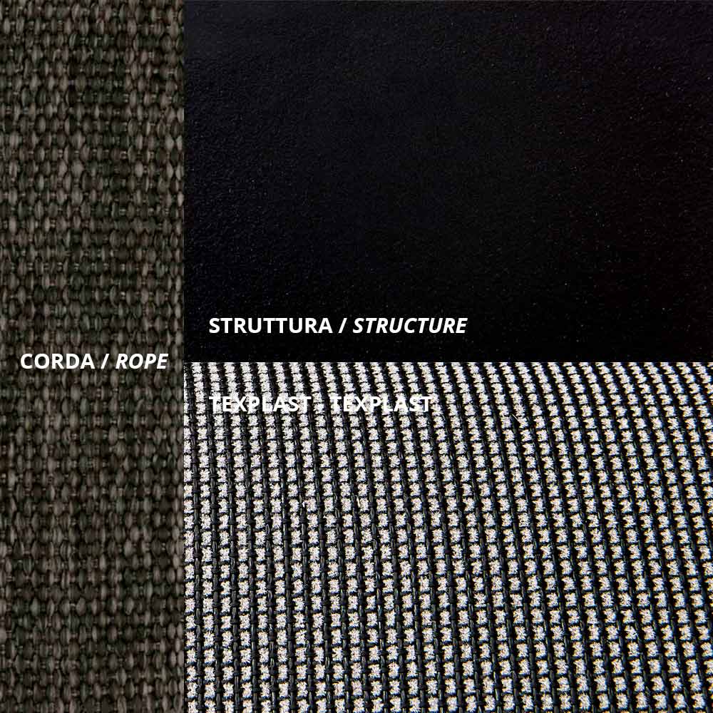 - Cadru: negru + Frânghie: neagră + Perne: negru sensibil