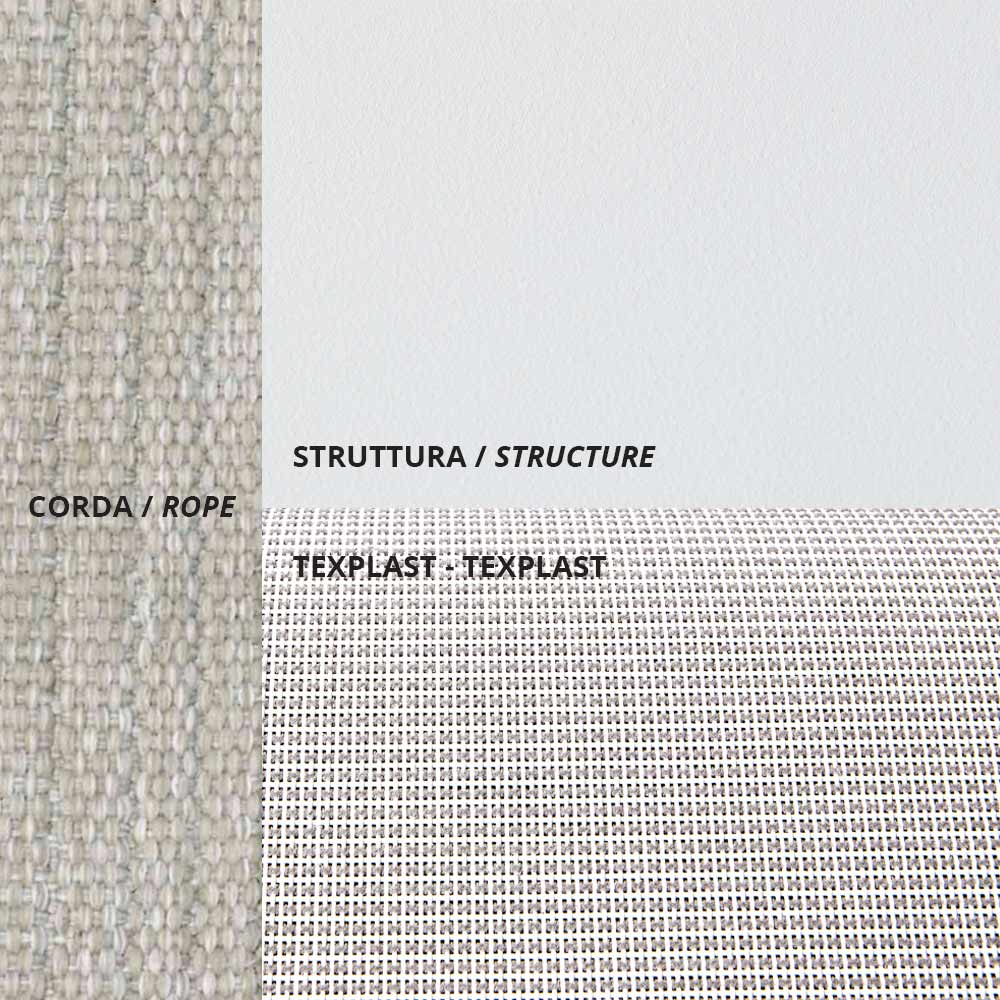 - Structură: alb în relief + Frânghie: noroi + Perne: alb sensibil