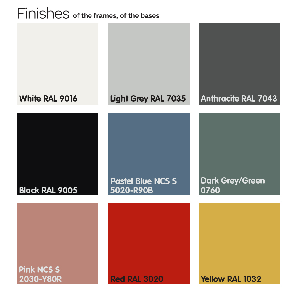 NB : structura si scaunul sunt disponibile intr-o gama larga de culori si finisaje diferite. Fotoliul este disponibil si in varianta cu cotiere.
