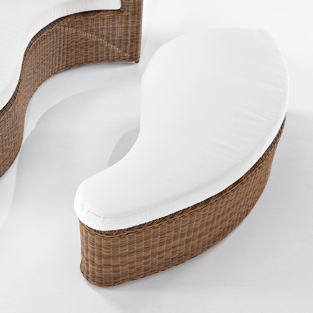 Acest șezlong se caracterizează prin designul său rotund și țesătura completă. Volumele sale moale și sinuoase se îmbină perfect cu sezutul mare care vă permite să vă bucurați de o relaxare optimă. Patul de zi Donna este alcătuit din două elemente complementare care pot fi îmbinate în voie pentru a forma un singur șezlong sau două scaune separate, în funcție de ocazie.