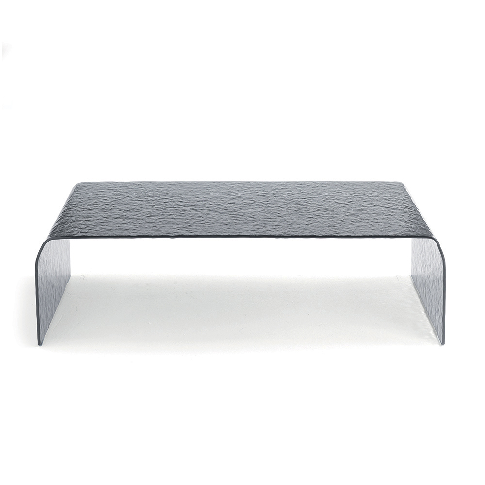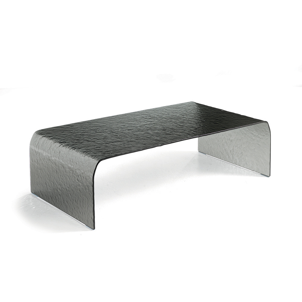 Fabricată dintr-o singură foaie de sticlă transparentă curbată , această măsuță de cafea prezintă un finisaj rafinat, ciocănit , care creează o interacțiune delicată de reflexii și profunzime. Forma continuă și fără cusur sporește puritatea materialului, transformând masa într-un obiect cu adevărat sculptural.