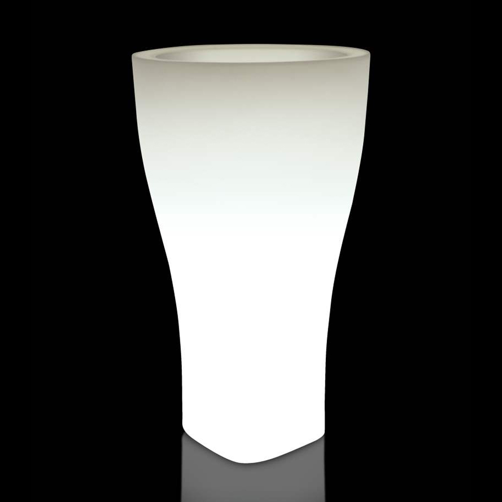 NB In varianta alb sidefat cu lumina, vaza iluminata este livrata cu kitul de iluminat deja asamblat: cablu negru de 2,5 metri pentru uz interior si exterior, suport de lampa cu fiting E27.