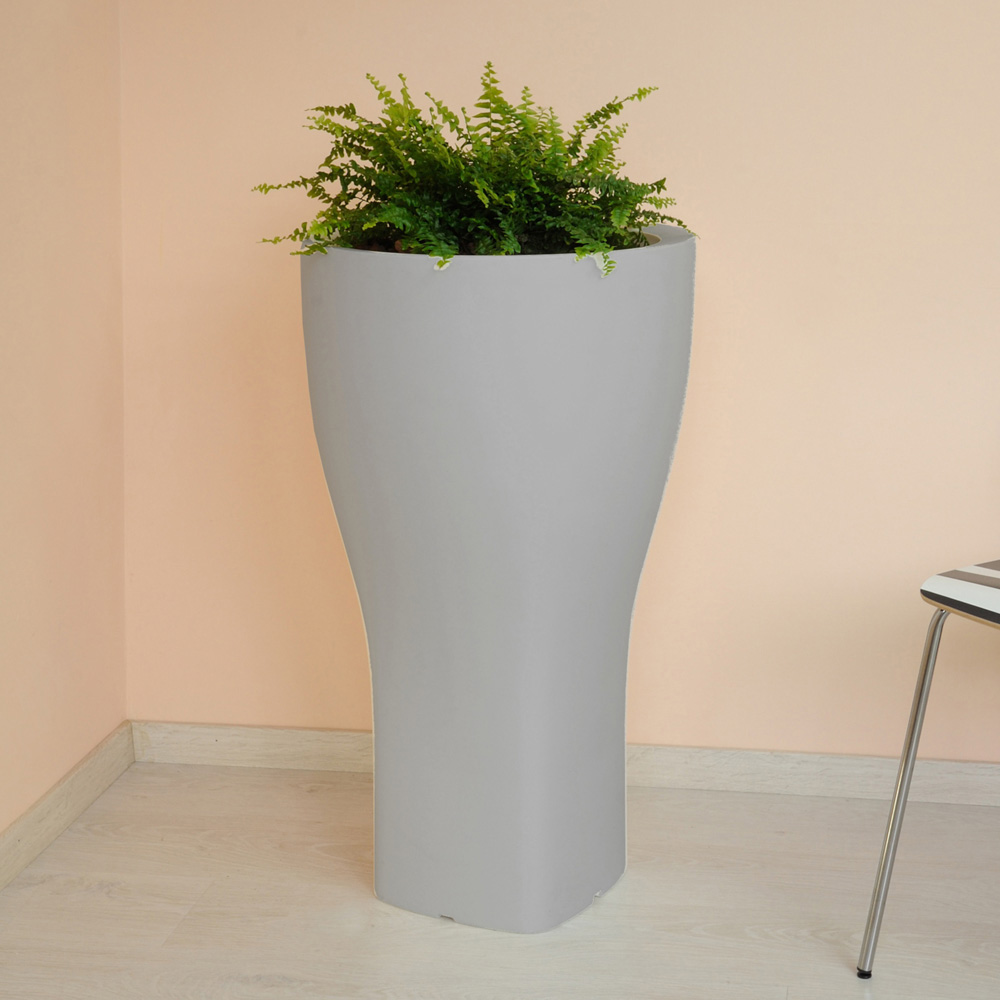 Ghiveci rotund de grădină din polietilenă colorată disponibil în două dimensiuni diferite.