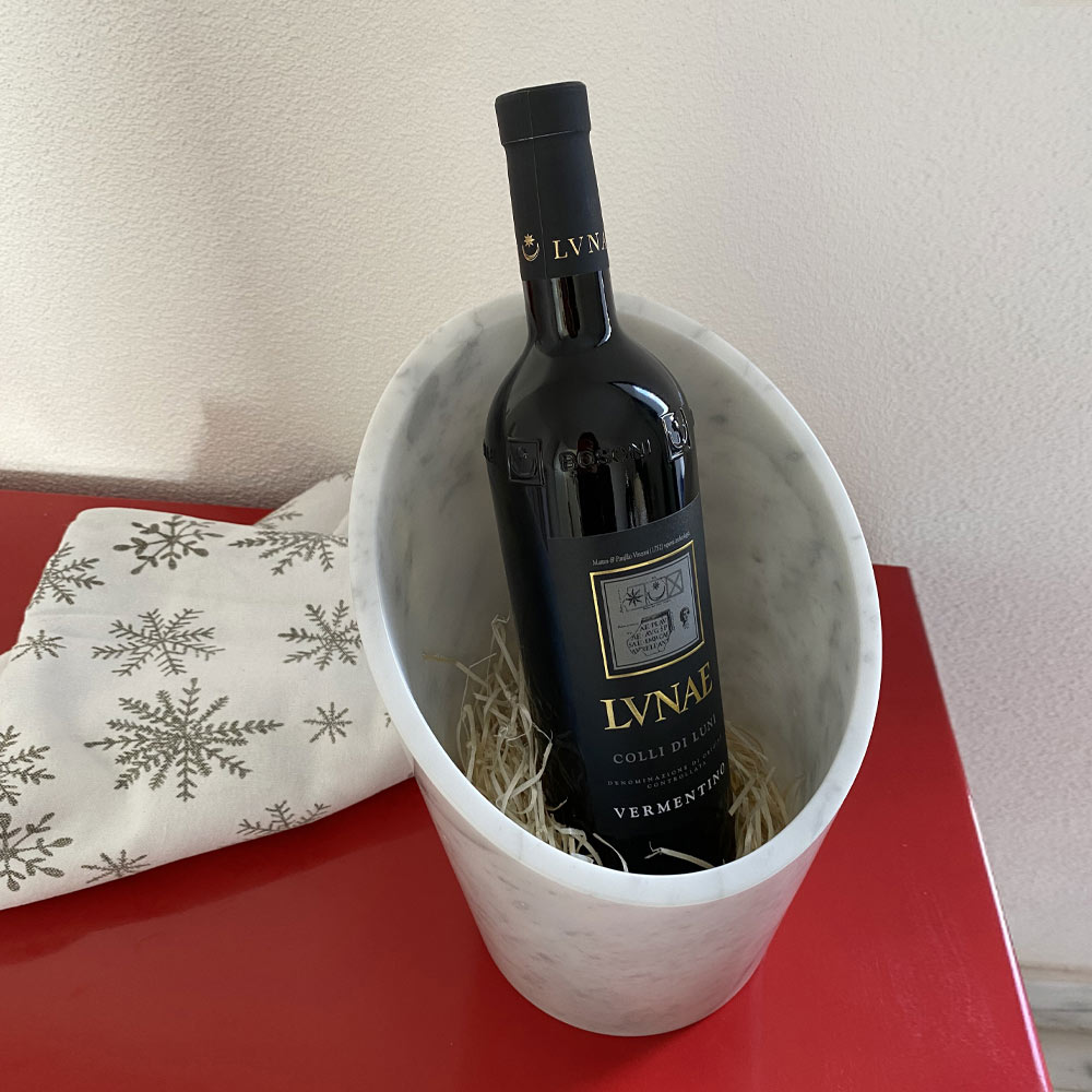 Glacetă modernă pentru vin sau șampanie din marmură albă Carrara Marquinia Made in Italy.