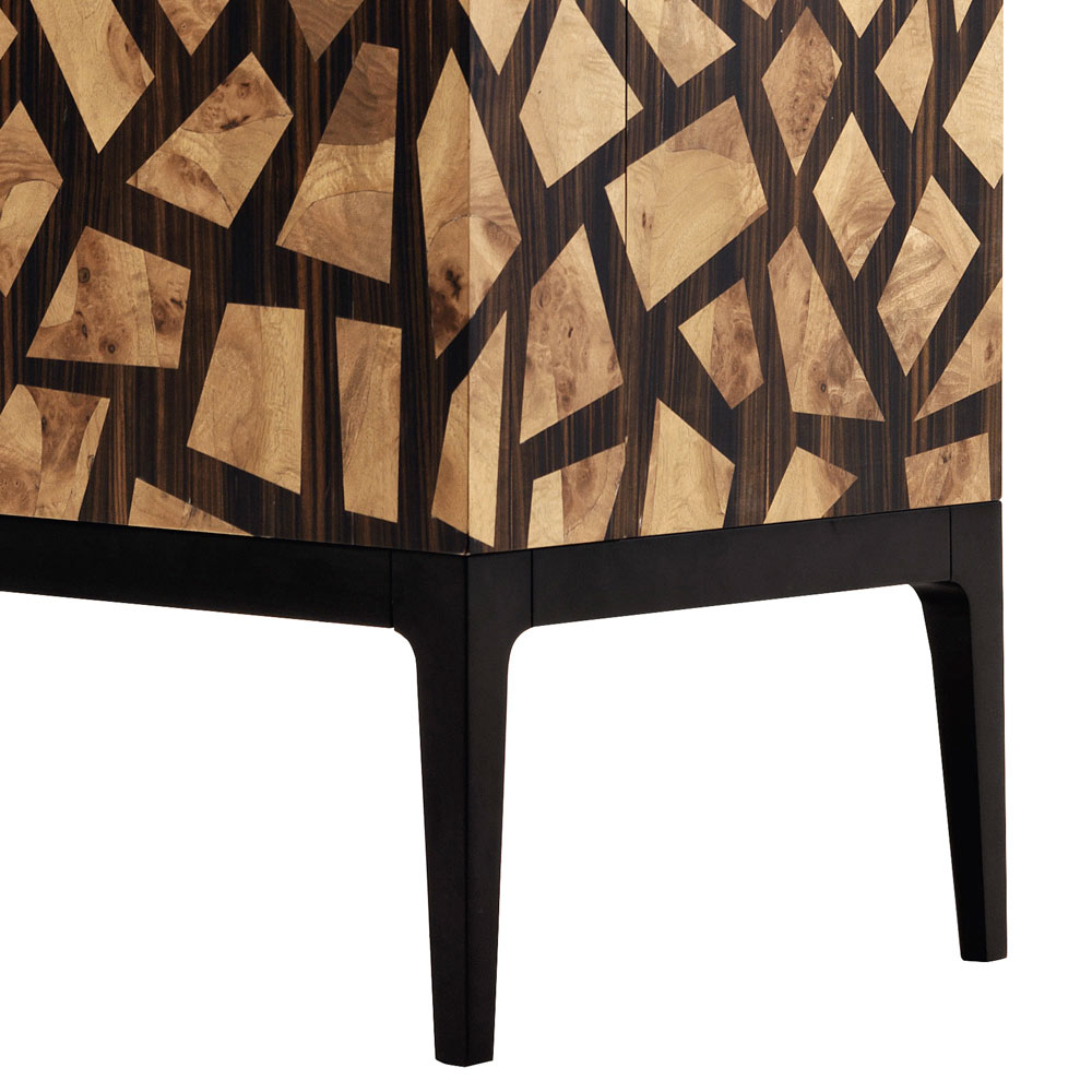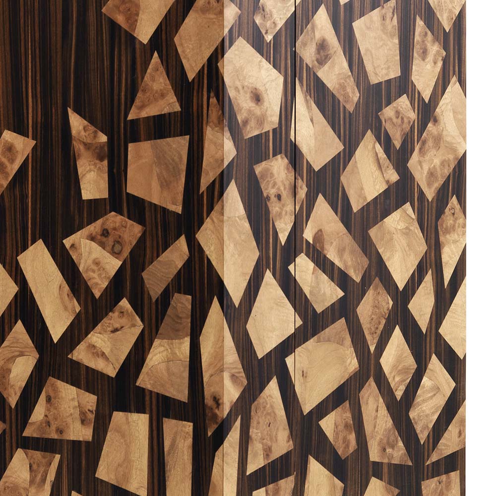 Bara mobilă Zarafa cu două uși este caracterizată printr-un stil elegant și rafinat datorită liniilor sale geometrice care reamintește mantaua unei faimoase girafe acordate regelui Franței în secolul al XIX-lea.