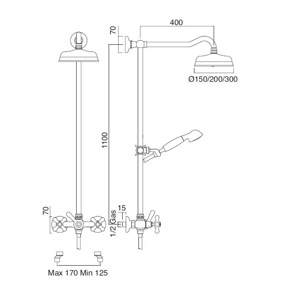 Grup de duș duplex în stil clasic din alamă lucrată manual, fabricat în Italia