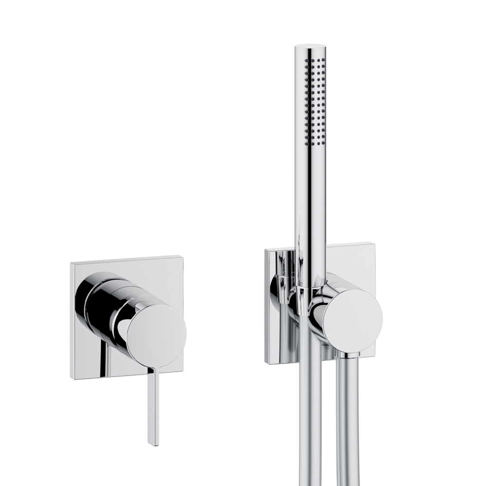 - Deviator ascuns cu două căi cu racord de furtun flexibil și suport de duș montat pe perete