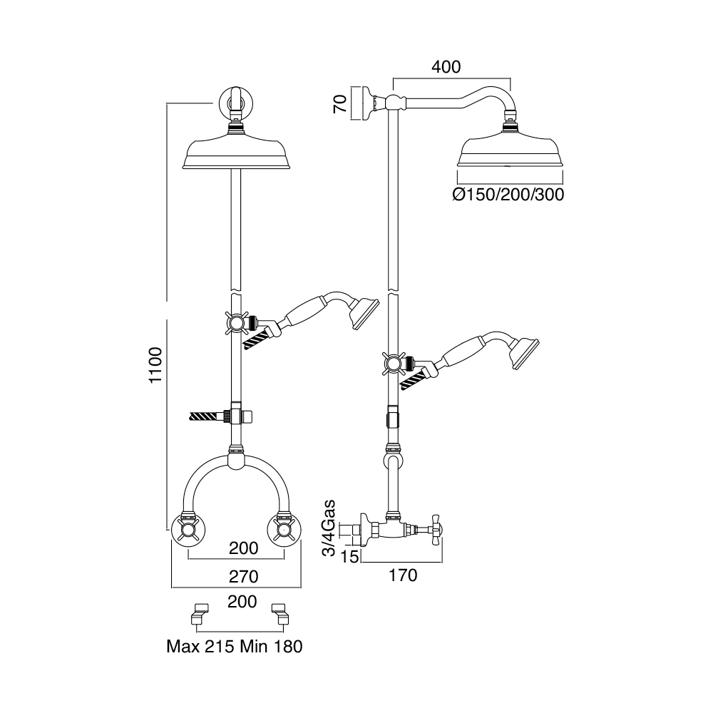 W 27 x D 40 x H 110 cm Ø dușhead 15 cm;